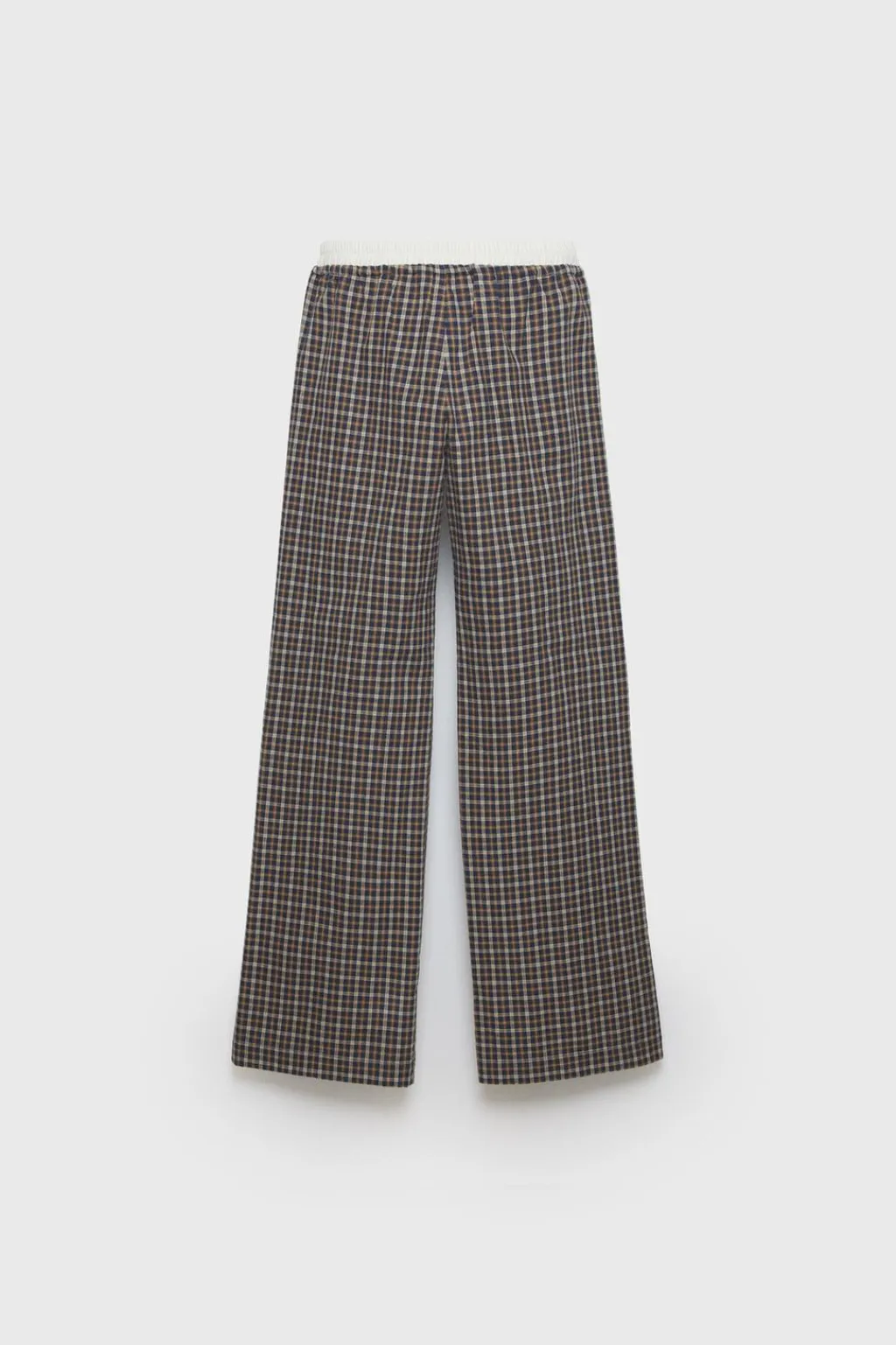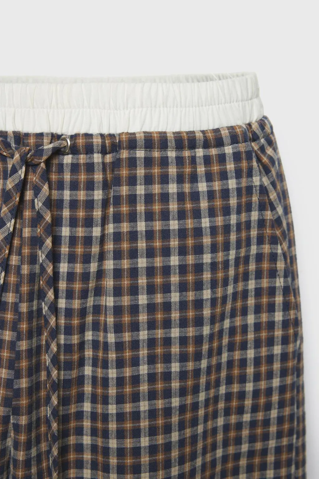 Pantalón de cuadros con doble cinturilla elástica a contraste y cordones ajustables frontal.