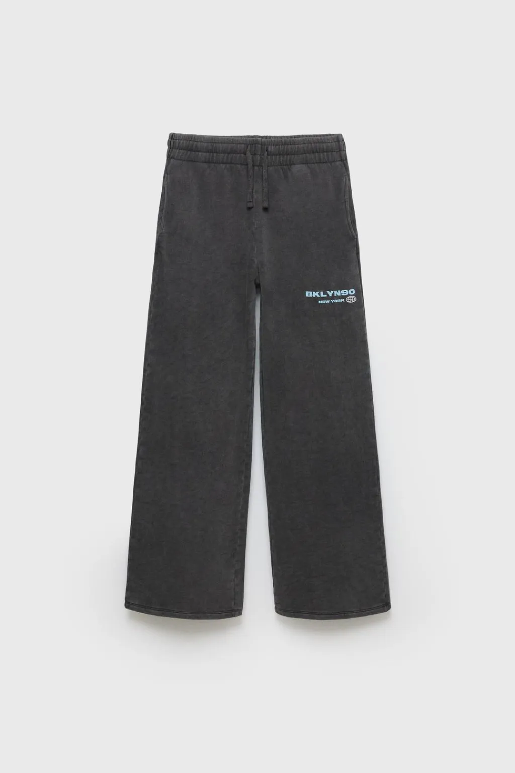 Pantalón con cinturilla elástica y cordones ajustables en frontal. Bolsillos delanteros y estampado texto en pernera.