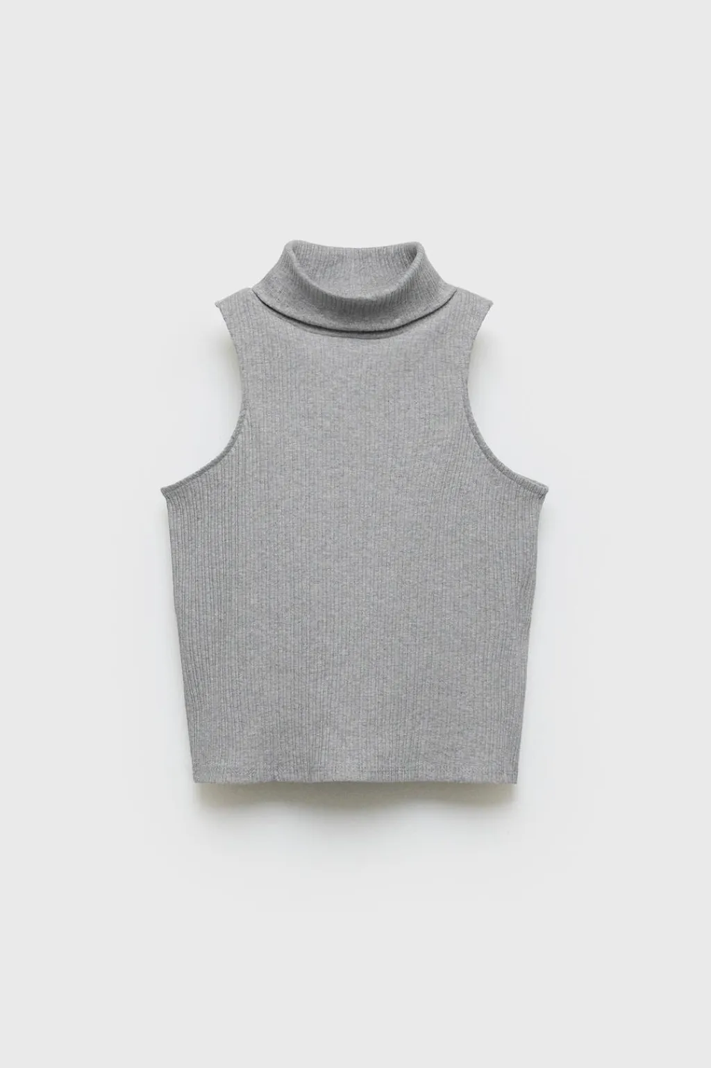 Camiseta con cuello vuelto y manga sisa.