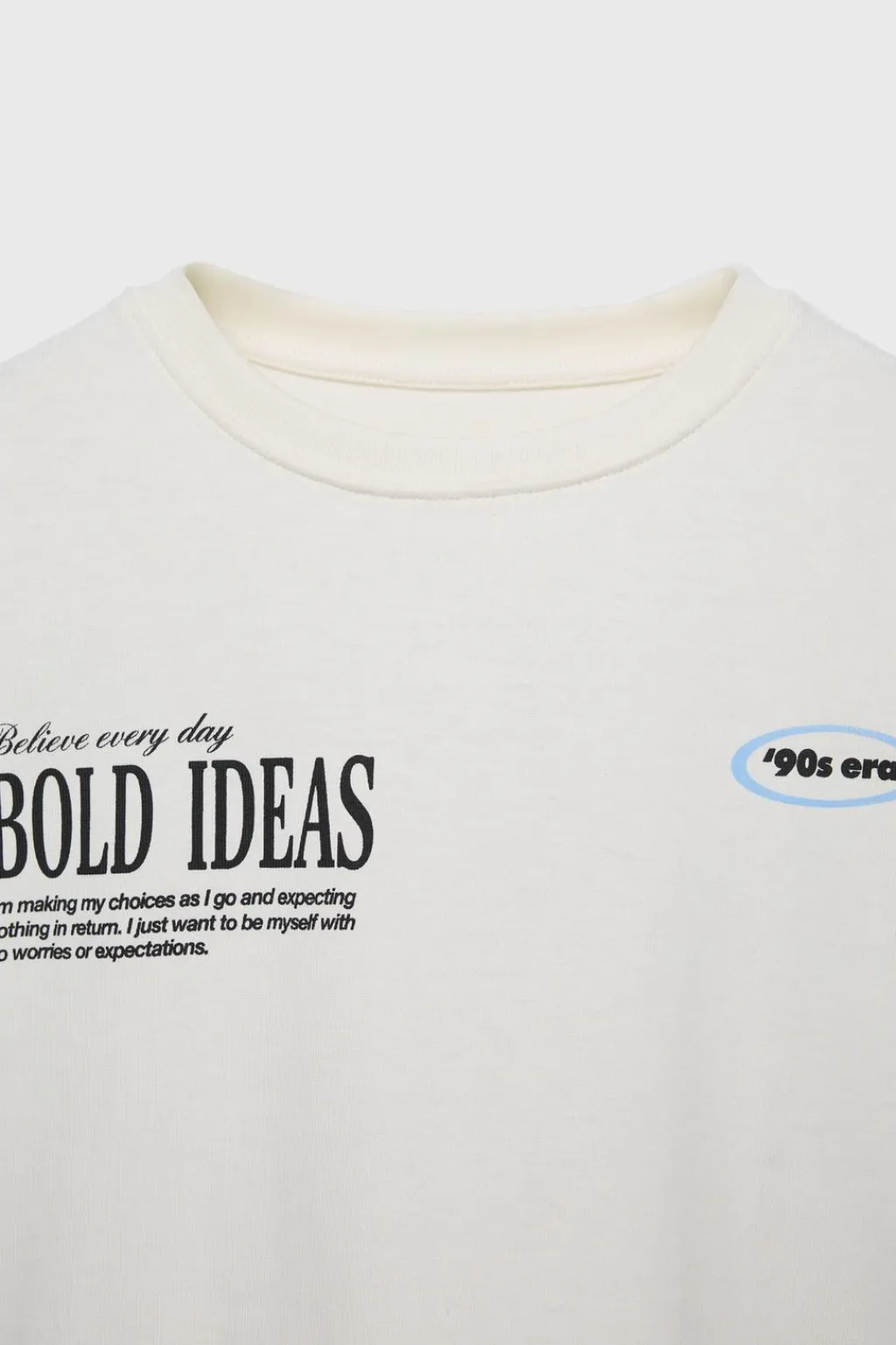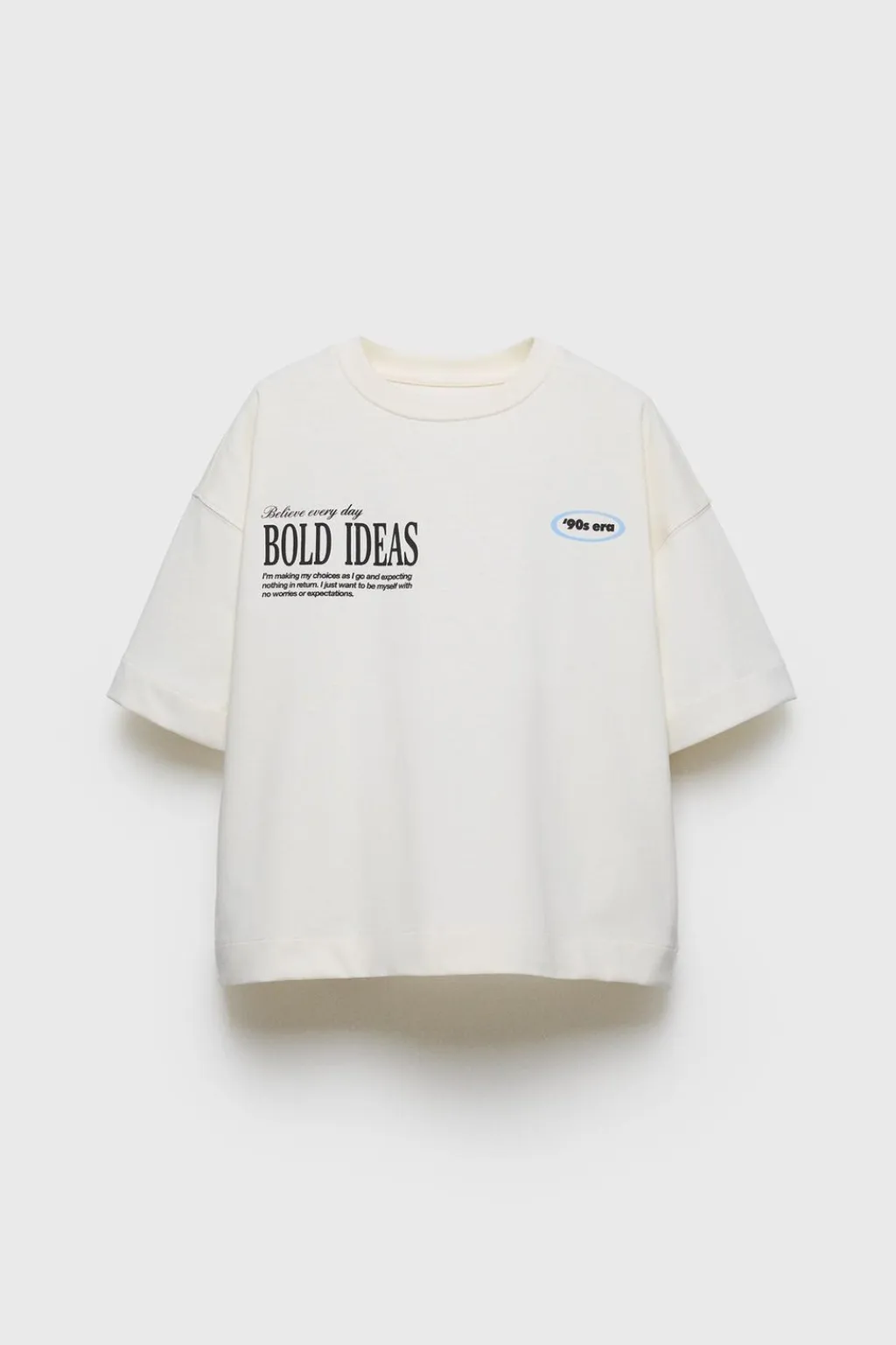 Camiseta tipo oversize con cuello redondo y manga corta. Detalle texto en pechera y espalda.