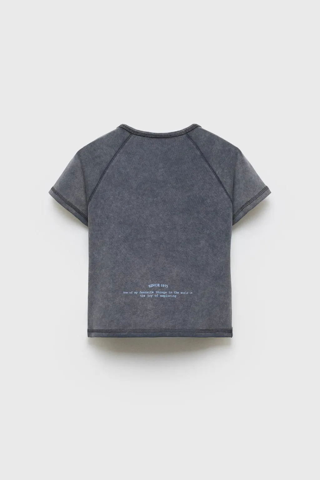 Camiseta con cuello redondo y manga corta ranglán. Estampado texto en delantero. Detalle pespuntes a contraste.