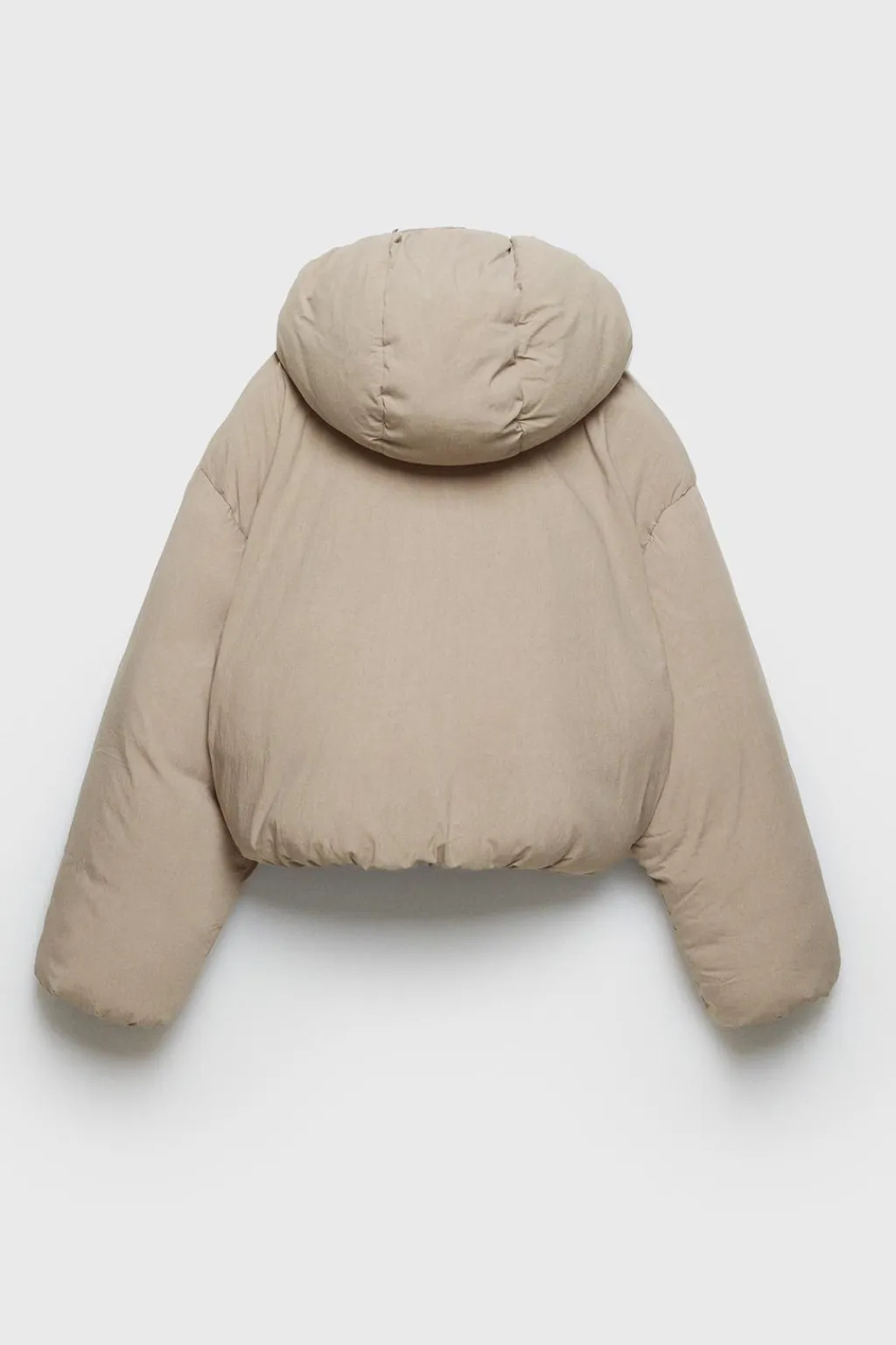 Cazadora con fit oversize. Con capucha, cuello subido y manga larga acabada en goma. Cierre cremallera frontal. Bolsillos en delantero ocultos por costura. Bajo acabado en goma. Forro interior combinado color a tono.
