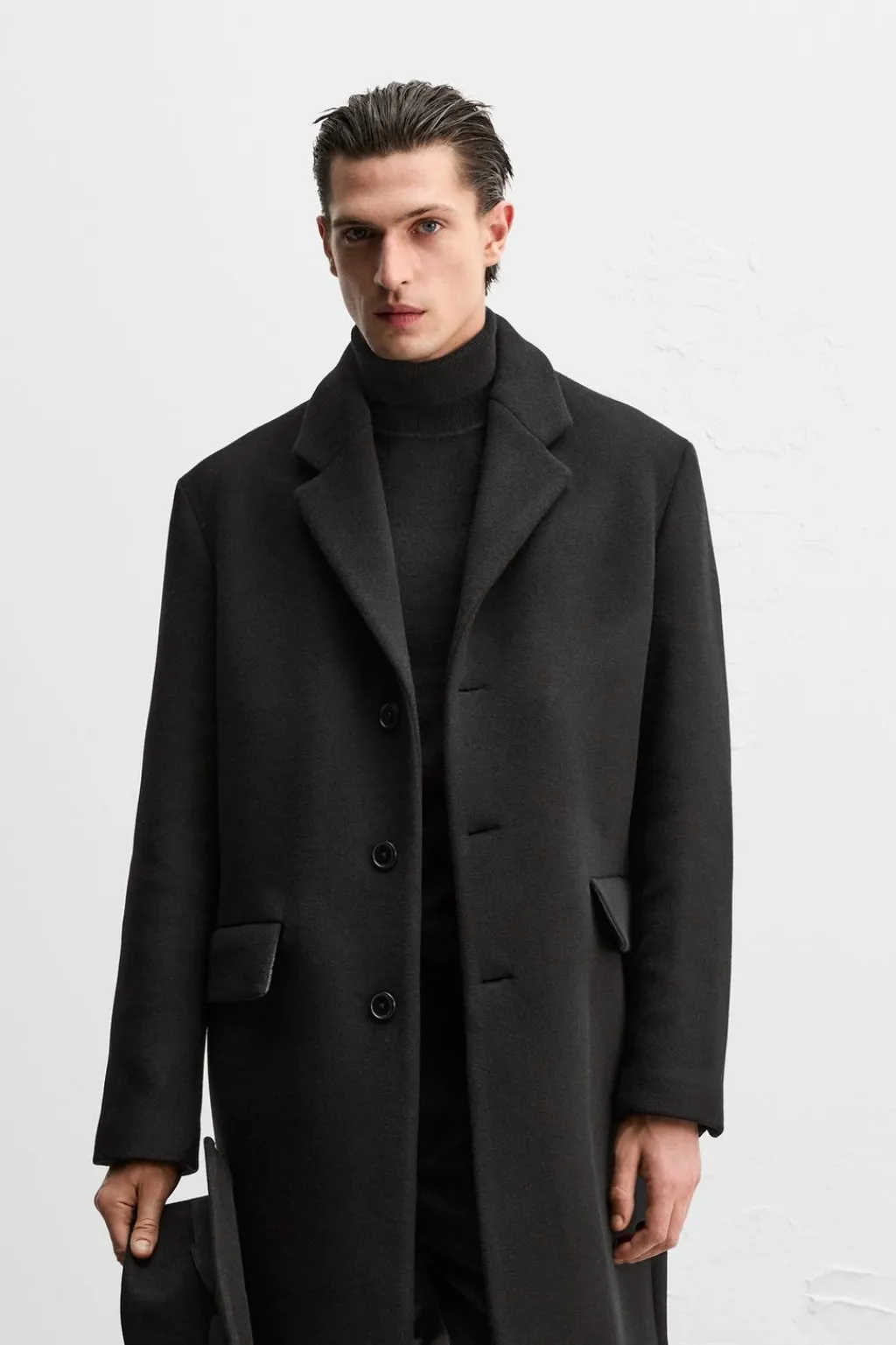 Abrigo regular fit confeccionado en tejido con mezcla de lana de origen italiano,