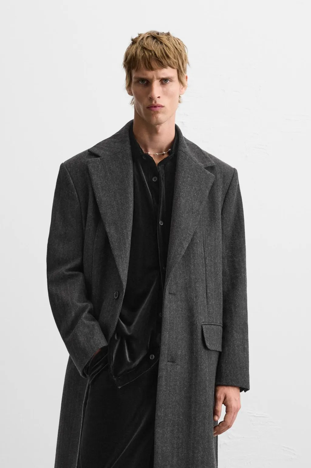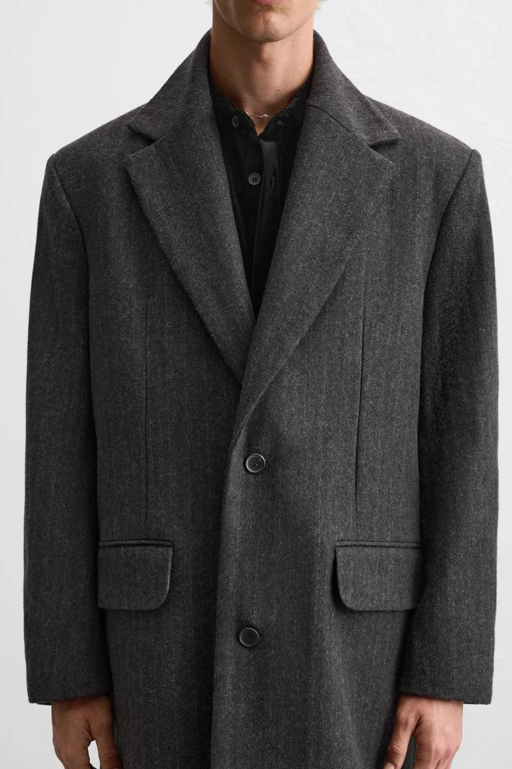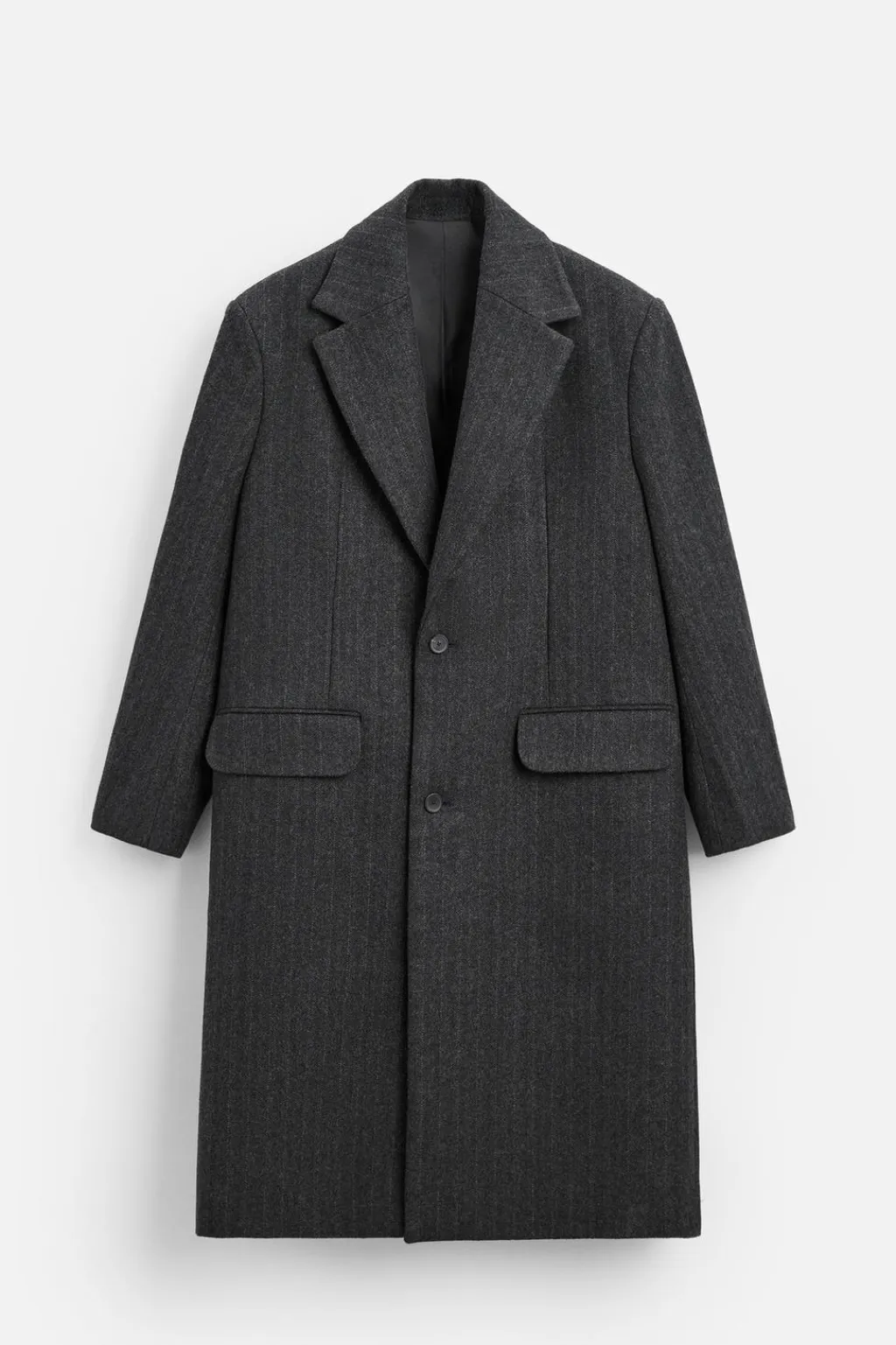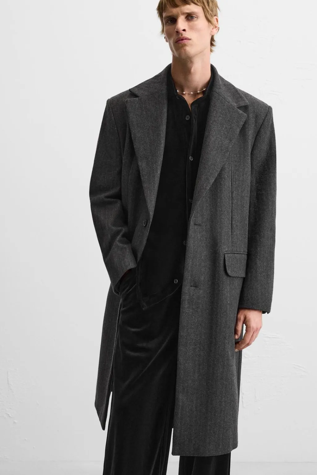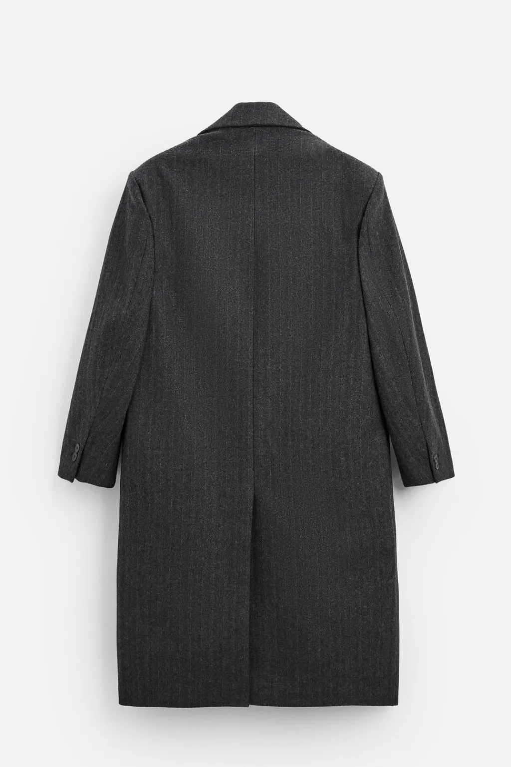 Abrigo straight fit confeccionado en tejido con algodón. Cuello con solapas de muesca y manga larga acabada en puño con botones. Bolsillos con solapa en cadera y detalle de bolsillo interior. Bajo con abertura central en espalda. Cierre frontal de botonadura.