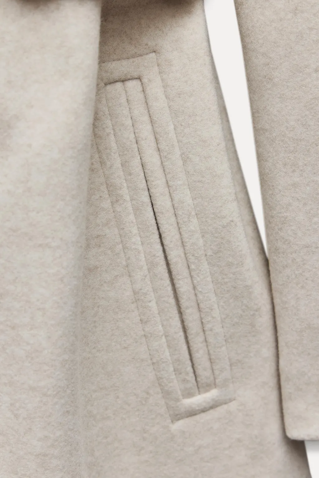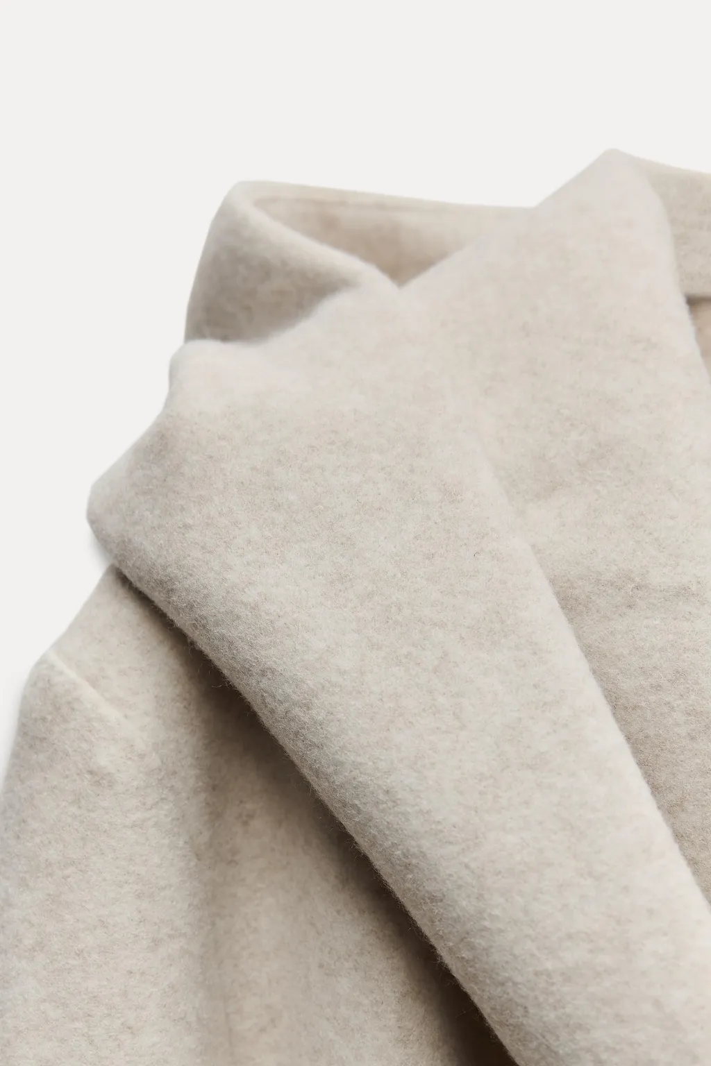 Abrigo con capucha y cuello con solapa. Manga larga. Bolsillos laterales de vivo. Cinturón lazada en mismo tejido. Cierre frontal cruzado con botones.