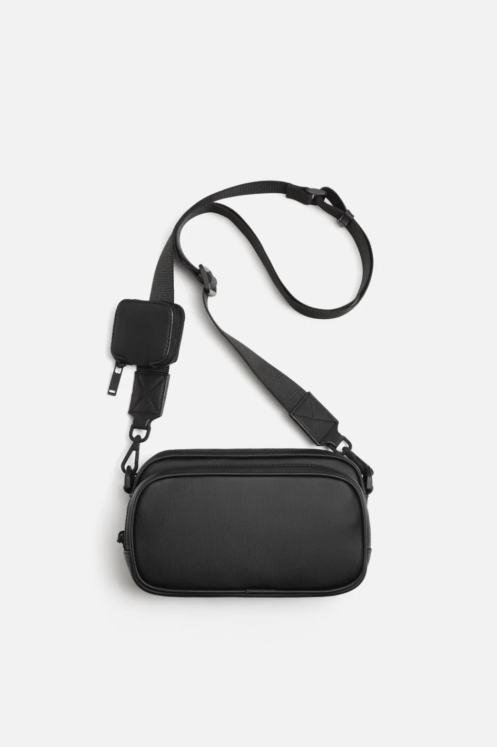 Bandolera con acabado texturizado. Compartimento principal con cierre mediante cremallera y bolsillo interior. Bolsillo frontal con cierre mediante cremallera. Asa de hombro removible y ajustable con detalle de monedero.