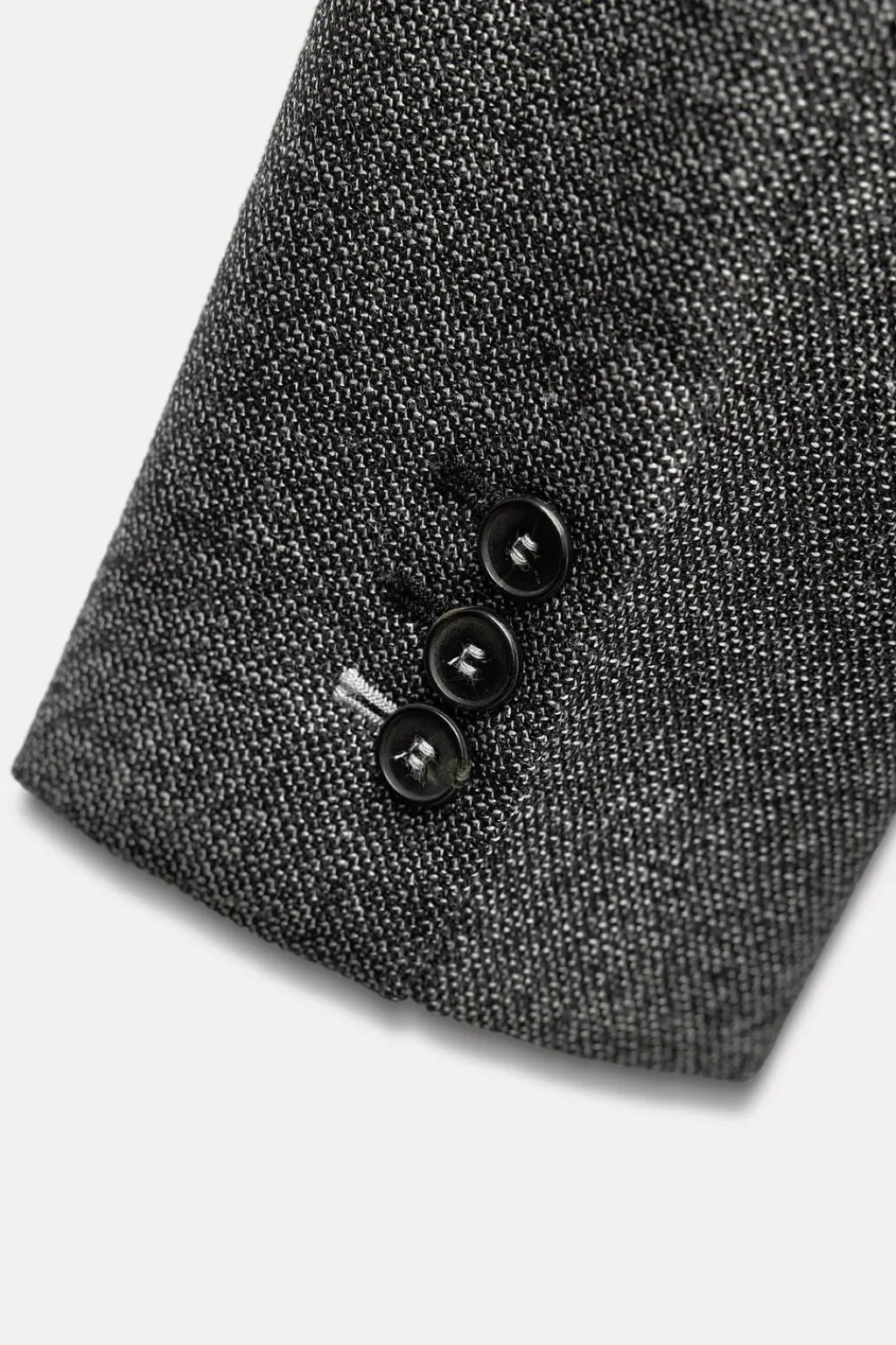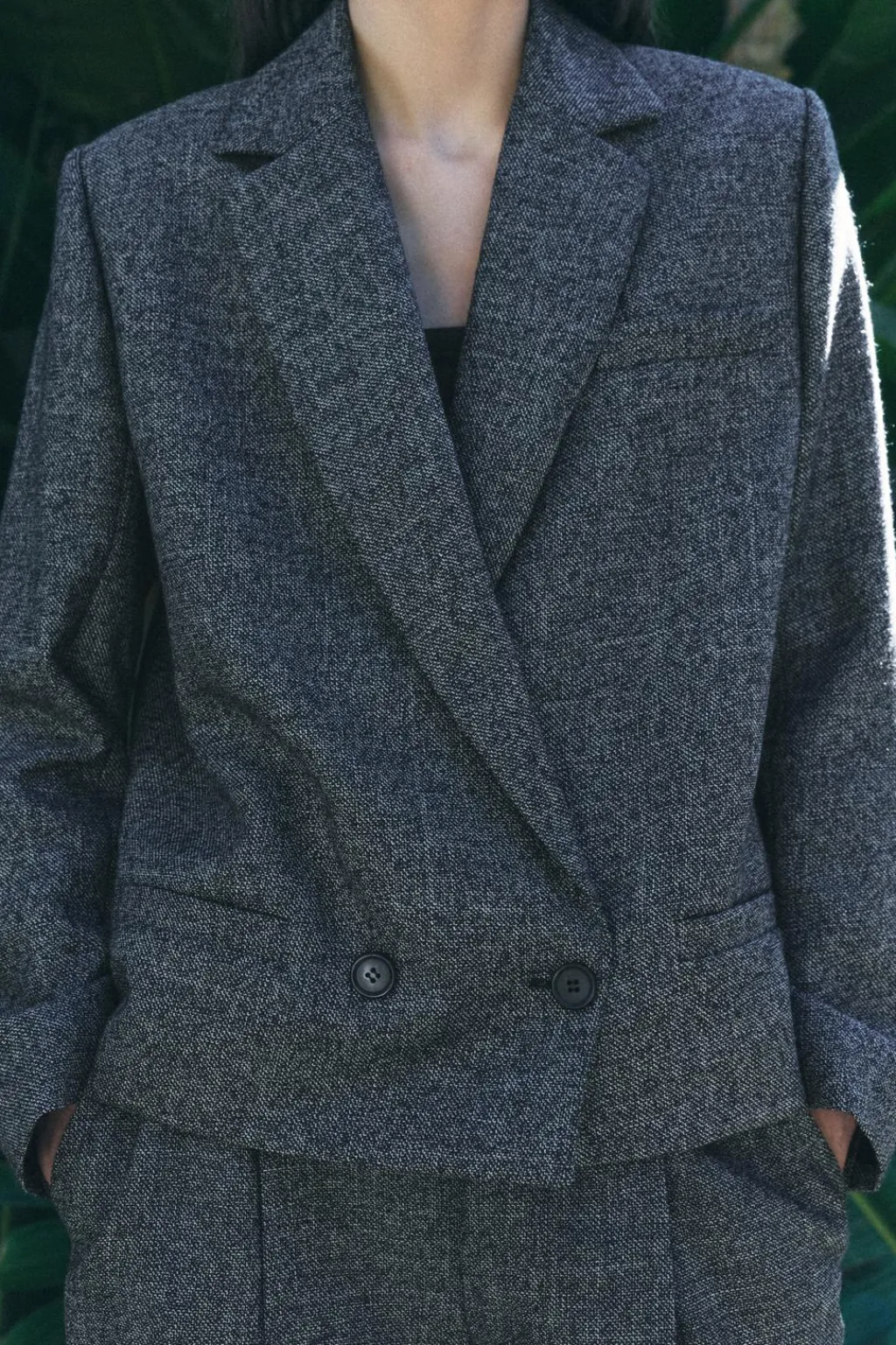 Blazer confeccionada en hilatura de lana 100%. Cuello solapa de muescas y manga larga acabada en abertura y botones. Bolsillos de vivo en delantero. Forro interior. Cierre frontal cruzado con botones.
