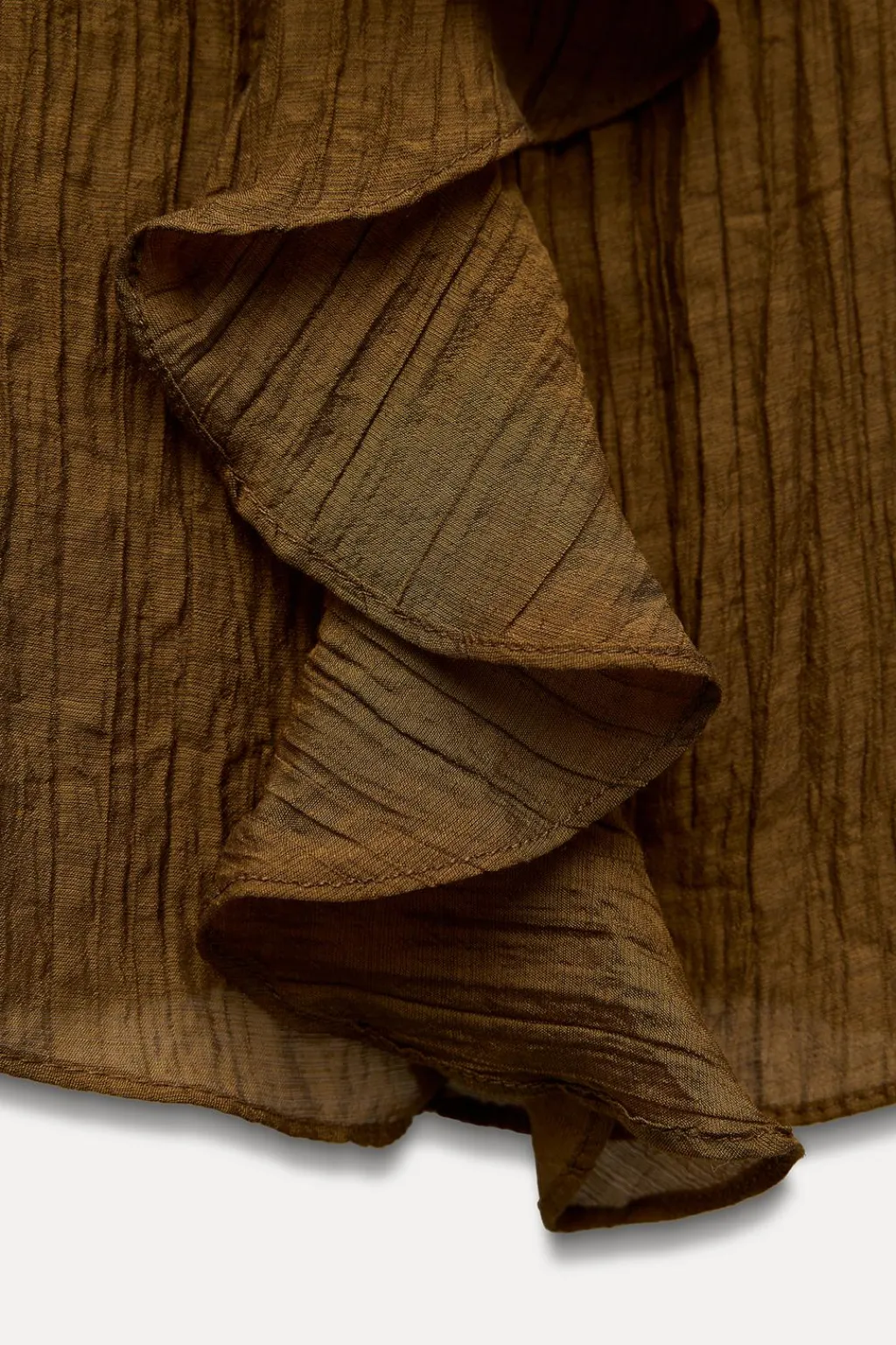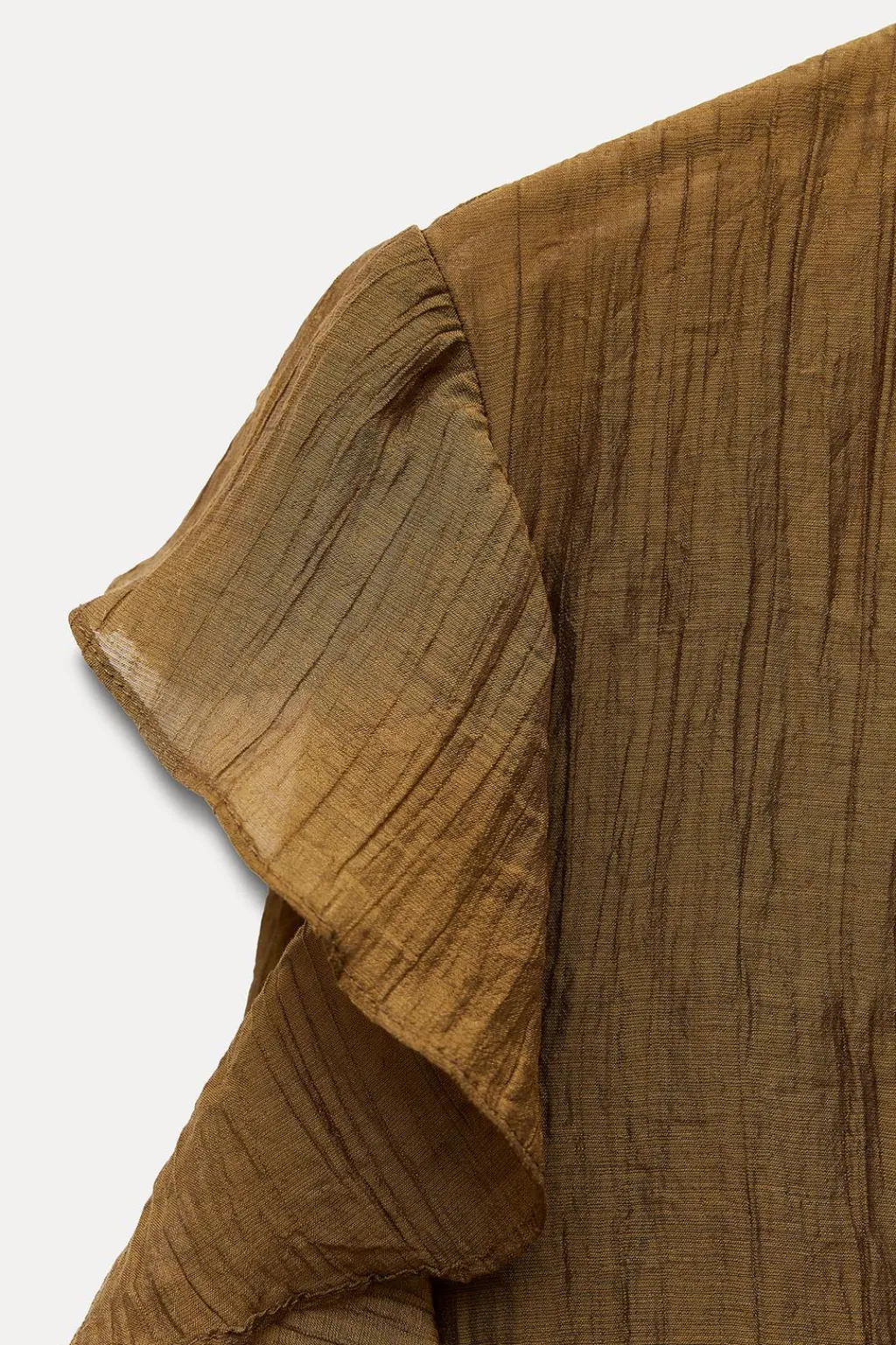 Blusa confeccionada en hilatura con mezcla de lyocell. Escote pico y manga larga acabada en volante. Detalle de volantes en mismo tejido. Bajo recto.
