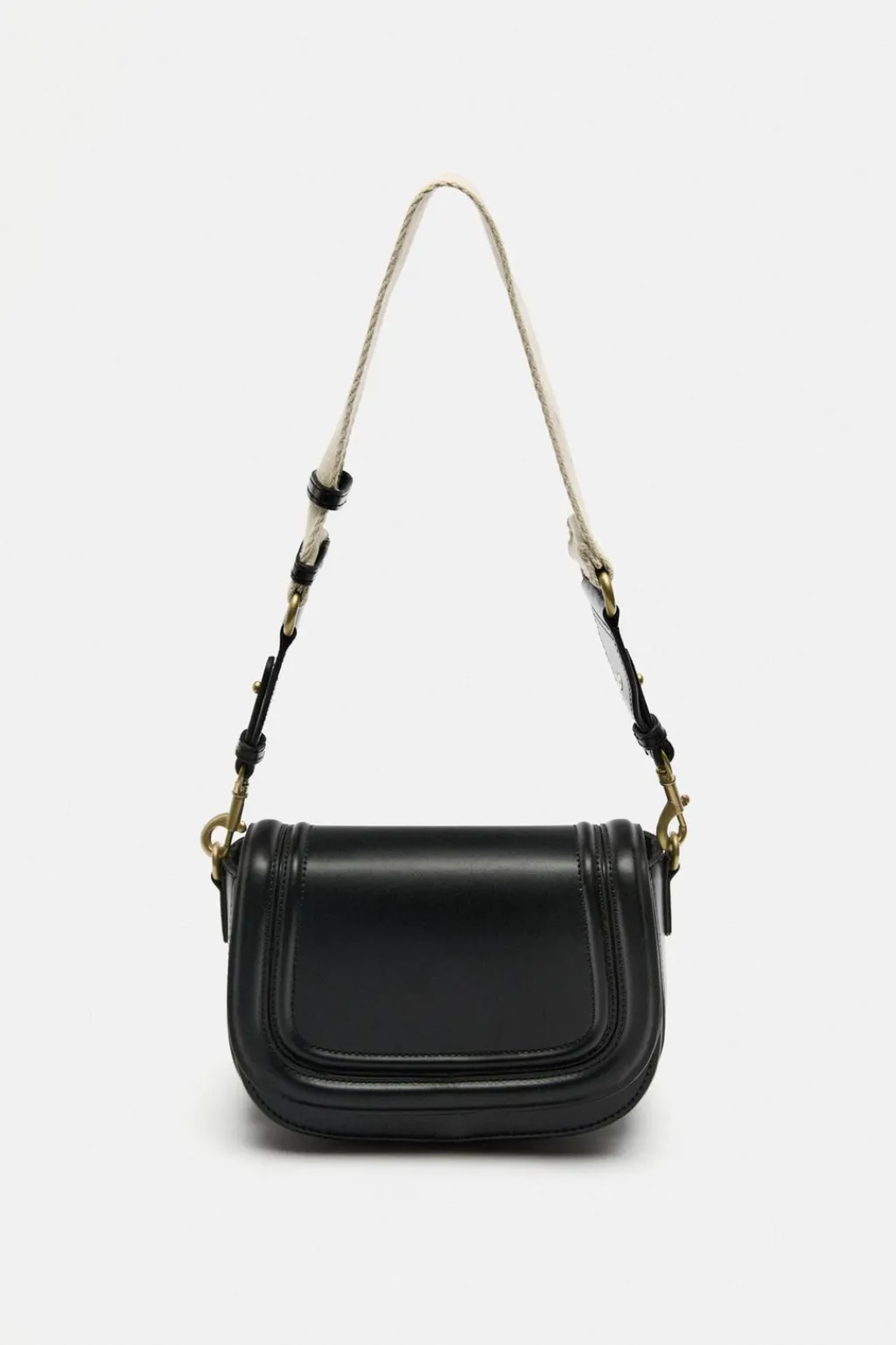 Bolso formato bandolera con solapa. Asas extraíbles y ajustables, una de hombro en tejido tipo canvas y otra función bandolera. Cierre mediante imán.