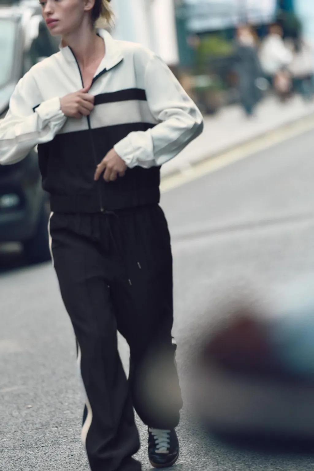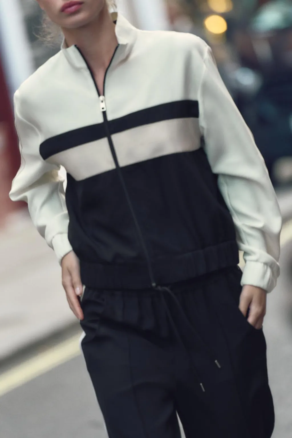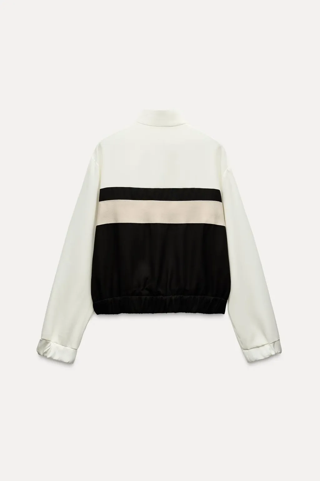 Bomber con cuello subido. Manga larga con bandas combinadas a contraste acabada en puño elástico. Bolsillos laterales. Bajo acabado en elástico. Cierre frontal con cremallera metálica.