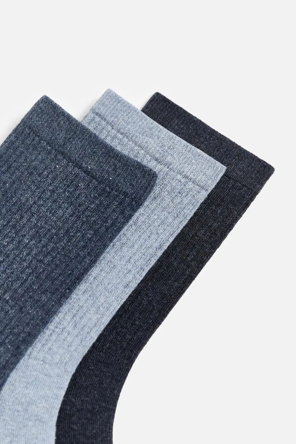 Pack de tres pares de calcetines tejidos en hilatura con mezcla de algodón. Acabados en rib.
