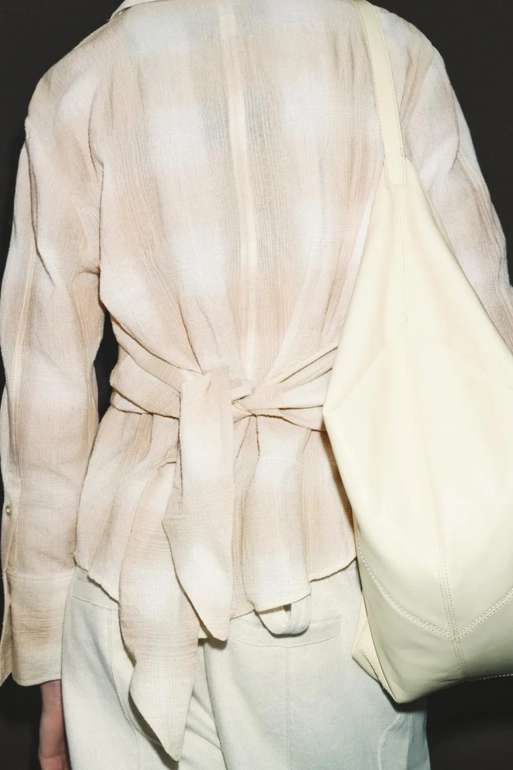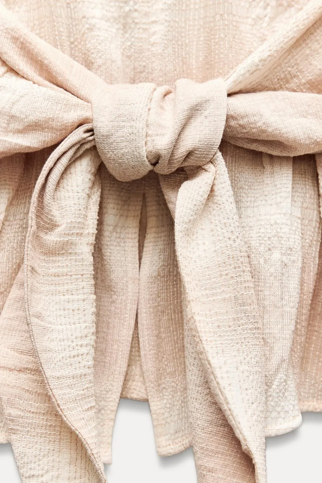 Camisa confeccionada en hilatura con mezcla de algodón. Cuello solapa y manga larga acabada en puño. Detalle de tejido drapeado y lazadas en mismo tejido. Cierre frontal con botones.