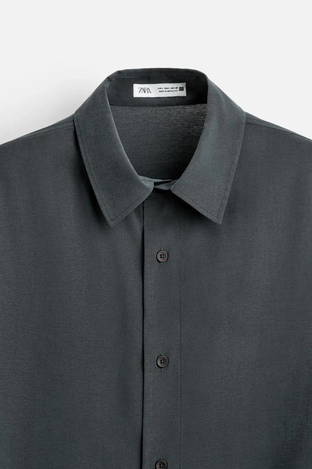 Camisa relaxed fit confeccionada en tejido con mezcla de modal. Cuello italiano y manga larga acabada en puño con botón. Cierre frontal de botonadura.