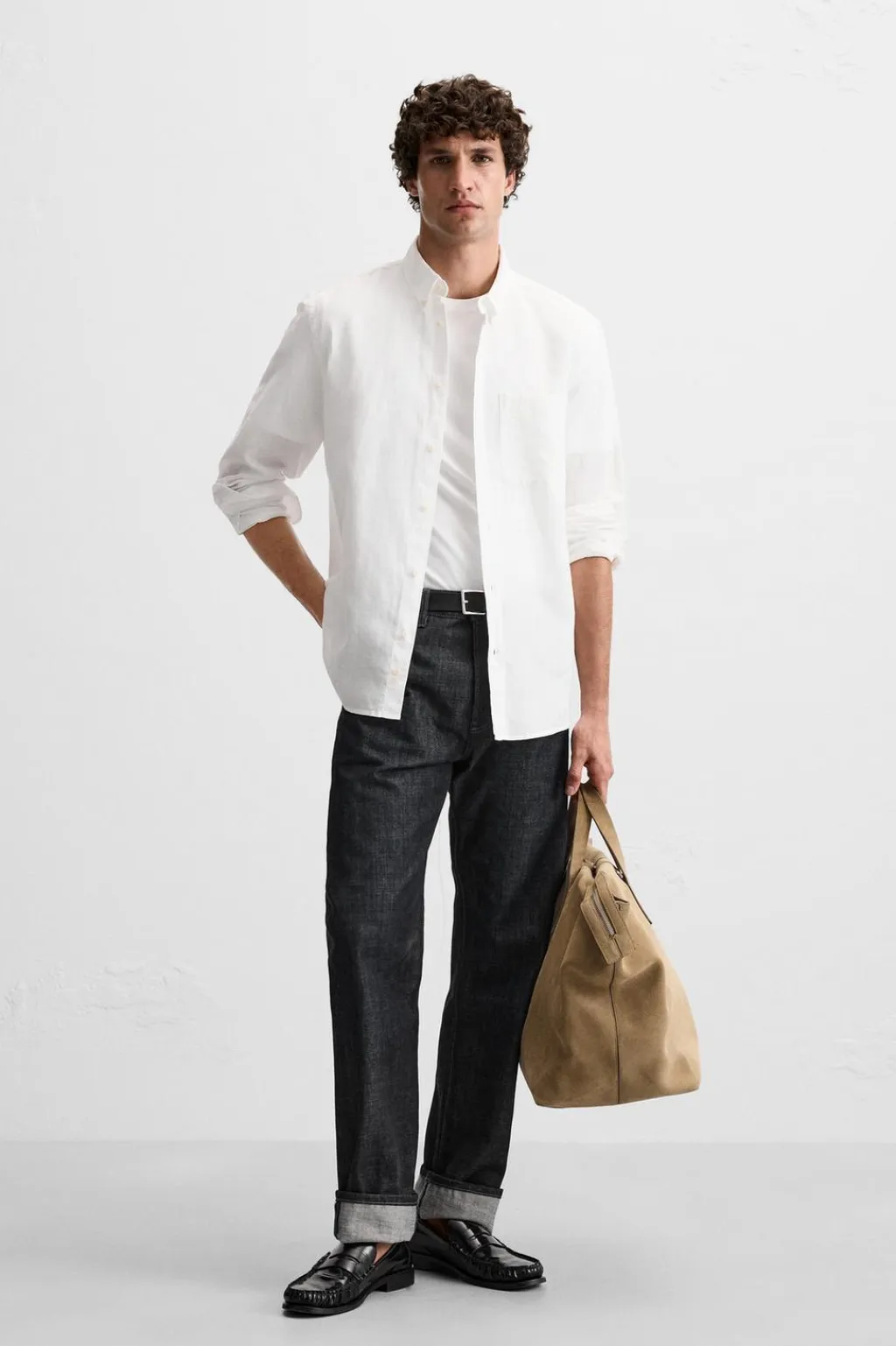 Camisa relaxed fit confeccionada en tejido con mezcla de lino y algodón. Cuello abotonado y manga larga acaba en puño con botón. Bolsillo plastrón en pecho. Cierre frontal de botonadura.