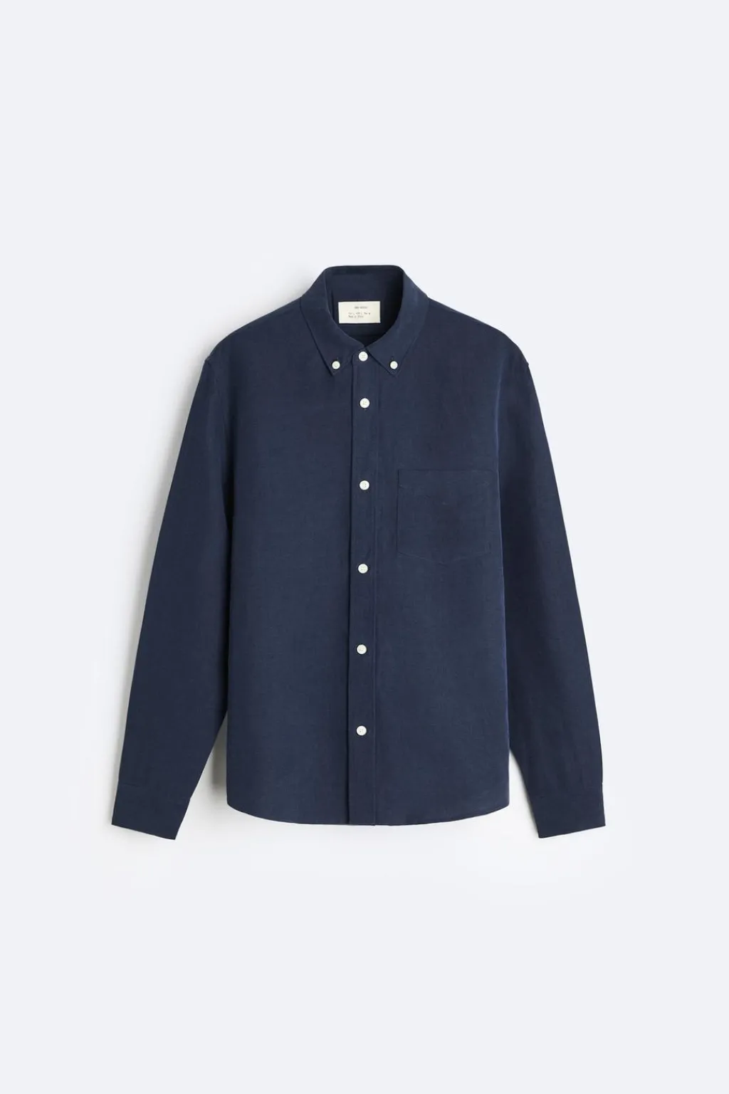 Camisa regular fit confeccionada en tejido con mezcla de lino y seda. Cuello abotonado y manga larga acabada en puño con botón. Bolsillo plastrón en pecho. Cierre frontal de botonadura.