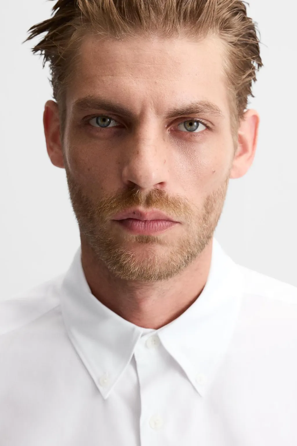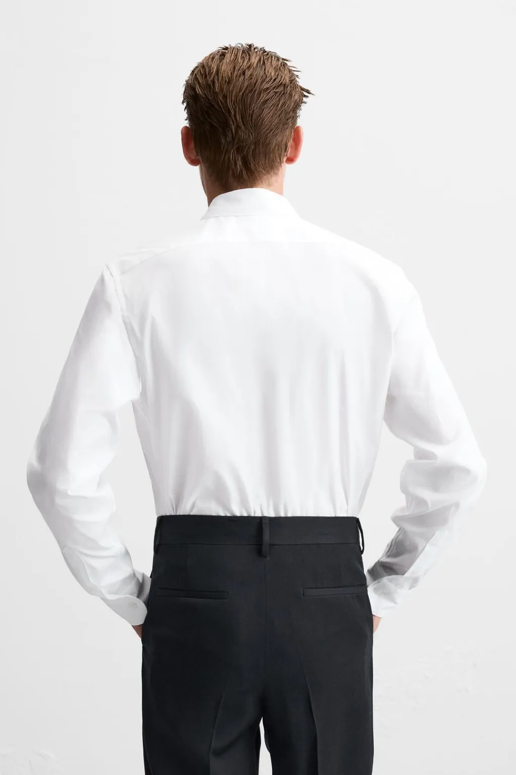 Camisa regular fit confeccionada en tejido de algodón. Cuello abotonado y manga larga acaba en puño con botón. Cierre frontal de botonadura.