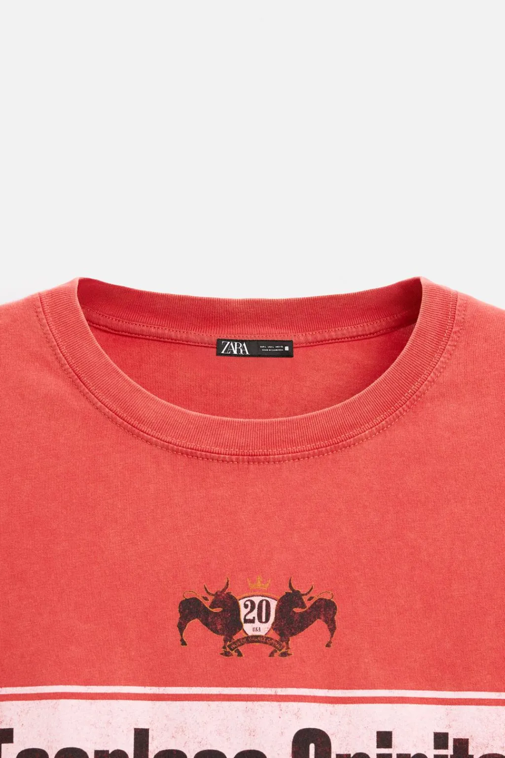 Camiseta cropped fit. Cuello redondo y manga corta. Estampado combinado a contraste en delantero. Efecto lavado.