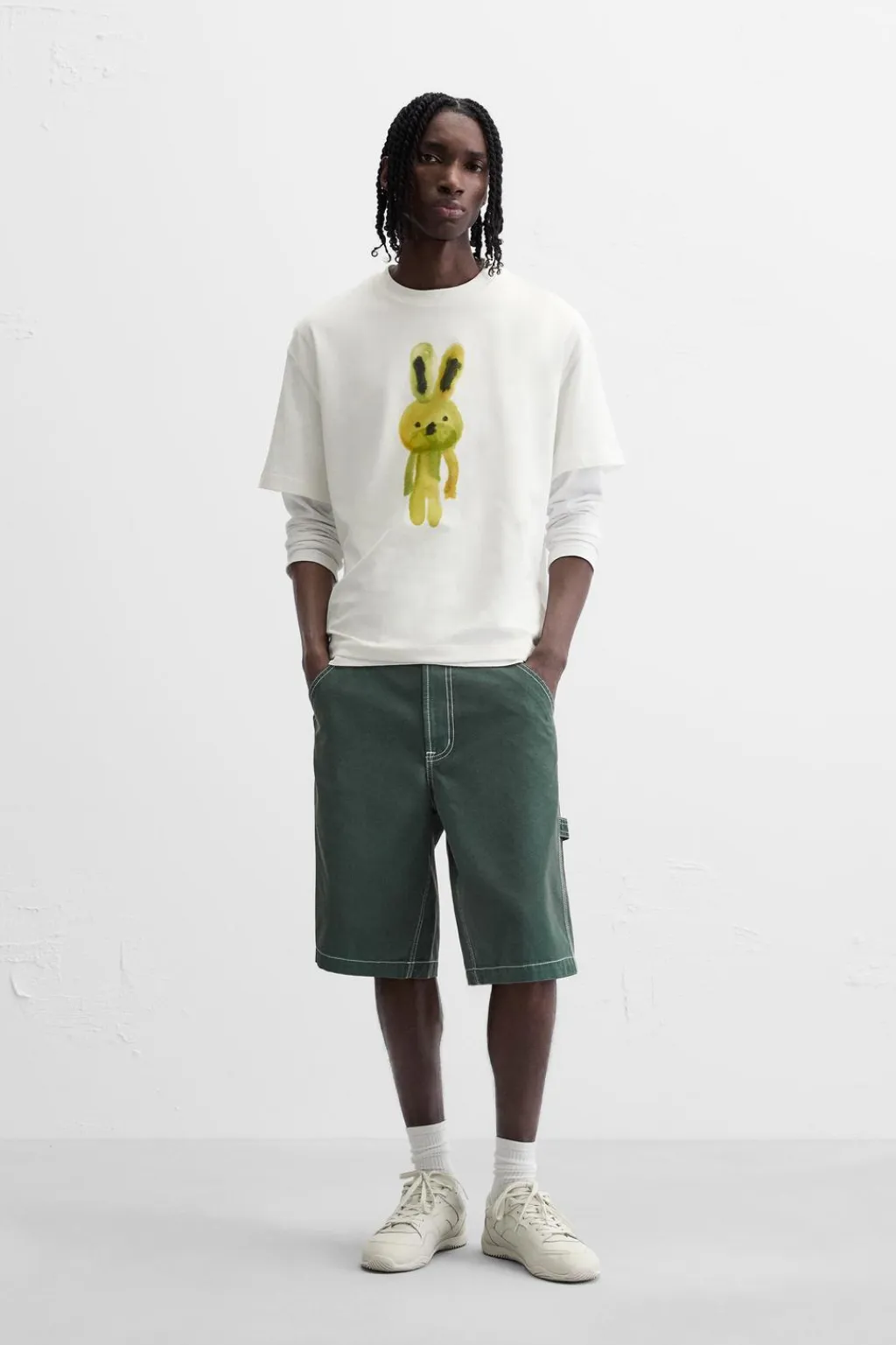 Camiseta relaxed fit. Cuello redondo y manga corta. Detalle de estampado combinado a contraste en delantero.