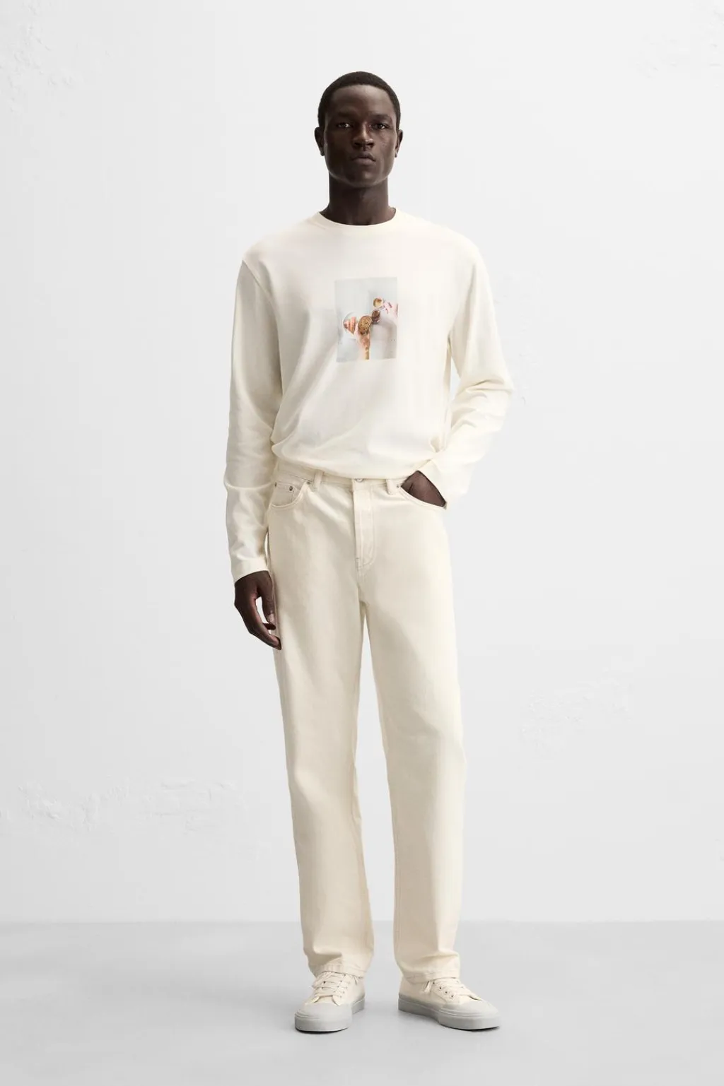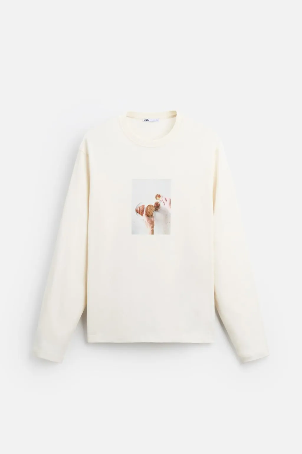 Camiseta regular fit confeccionada en tejido compacto de algodón. Cuello redondo y manga larga. Estampación fotográfica combinada a contraste en delantero.