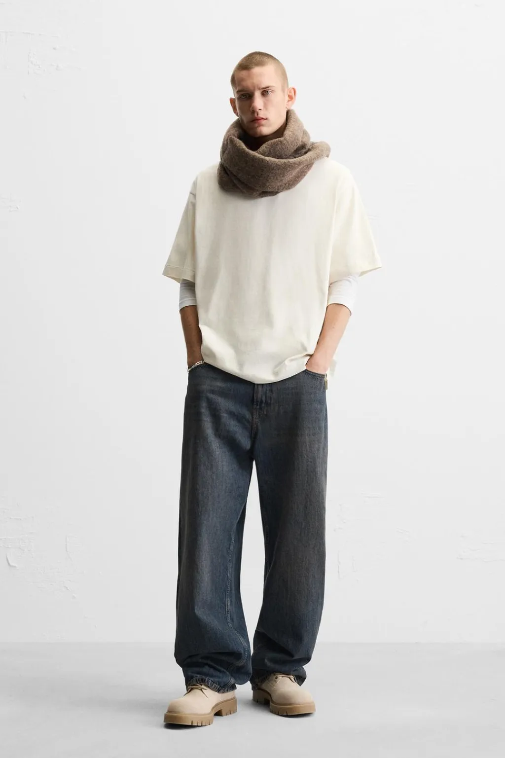 Camiseta relaxed fit. Cuello redondo y manga corta. Detalle de parche combinado a contraste en espalda.