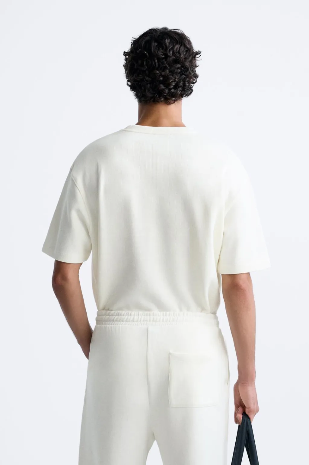 Camiseta relaxed fit confeccionada en tejido con tacto suave. Cuello redondo y manga corta.