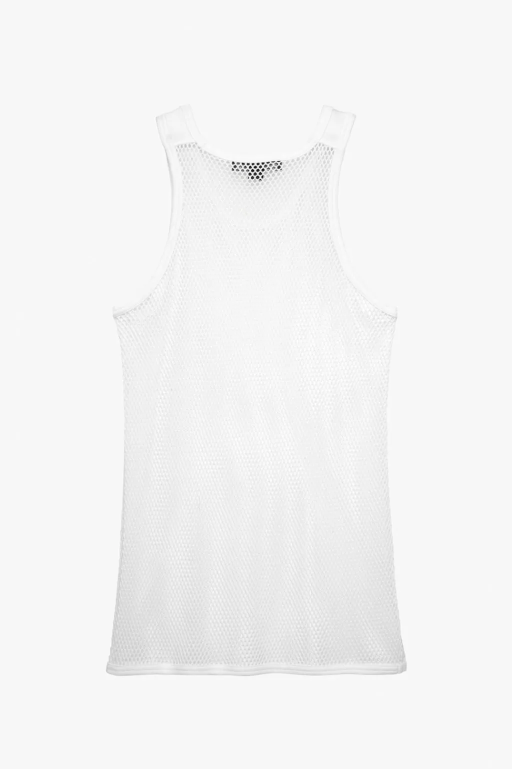 Camiseta slim fit confeccionada en tejido con estructura abierta. Cuello redondo y manga sisa.