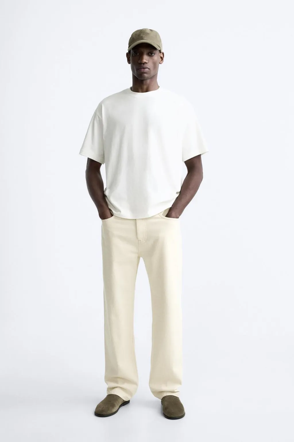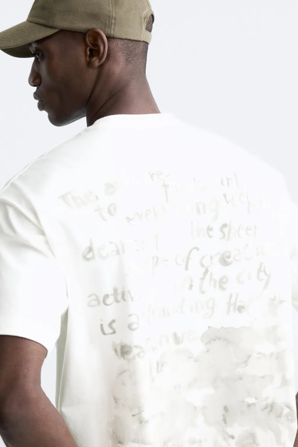 Camiseta relaxed fit. Cuello redondo y manga corta. Estampación de textos efecto acuarelado en espalda.
