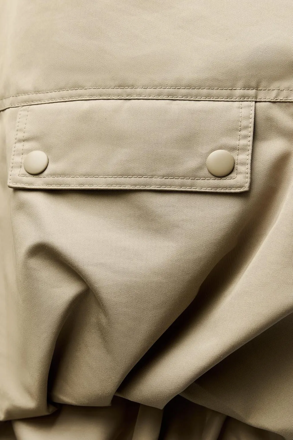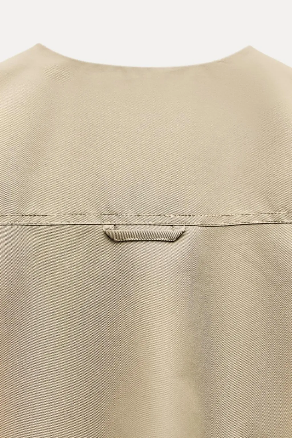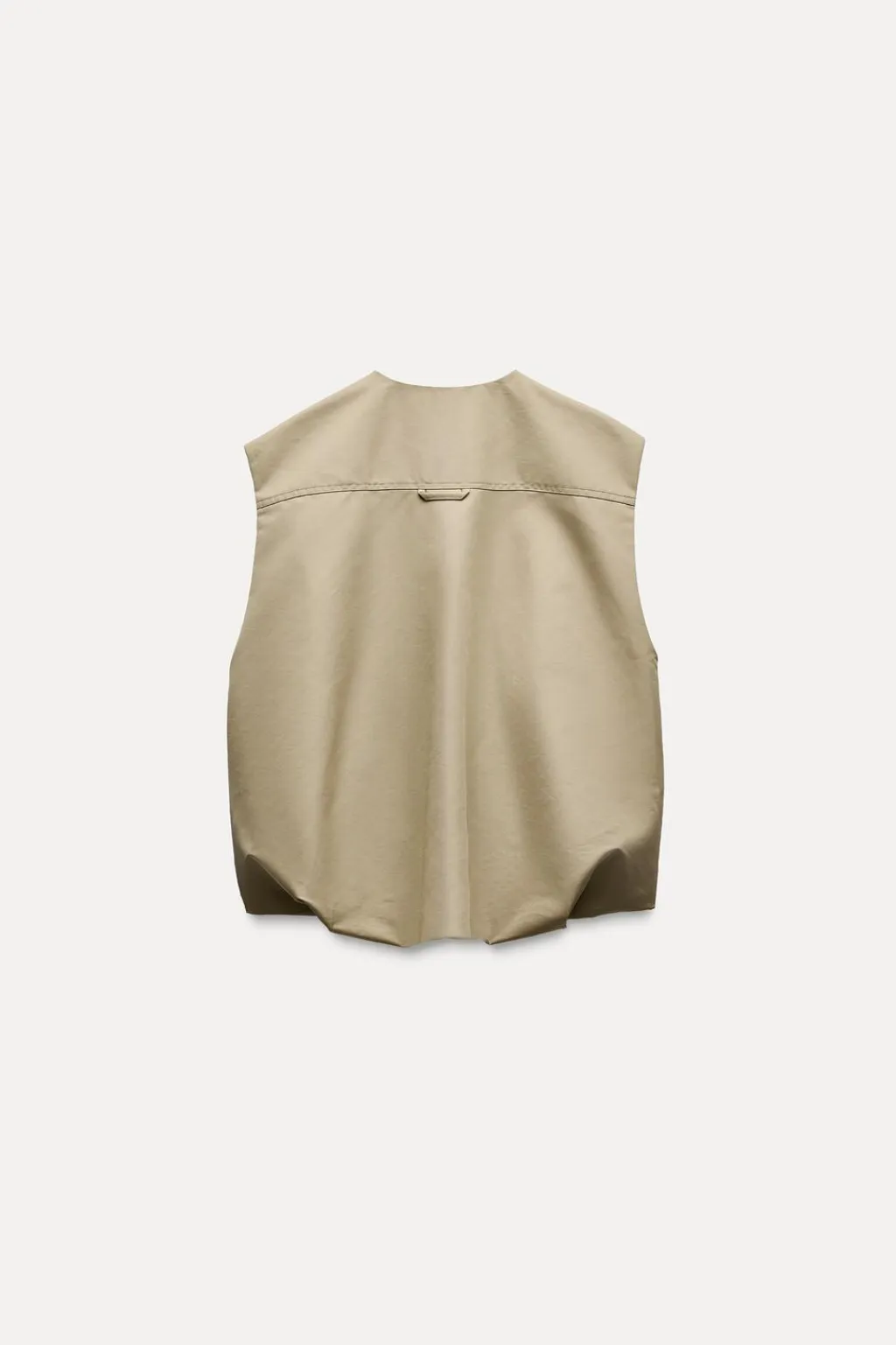 Chaleco confeccionado en hilatura con algodón. Cuello redondo y manga sisa. Bolsillos con solapa y botones a presión en delantero. Bajo acabado en volumen con pliegues. Forro interior a tono. Cierre frontal con cremallera metálica.
