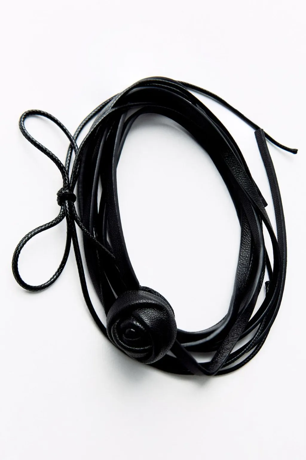 Collar choker doble realizado en piel 100%. Detalle aplicación de flor en mismo material. Cierre con lazadas.