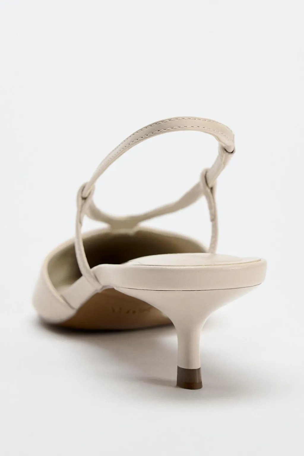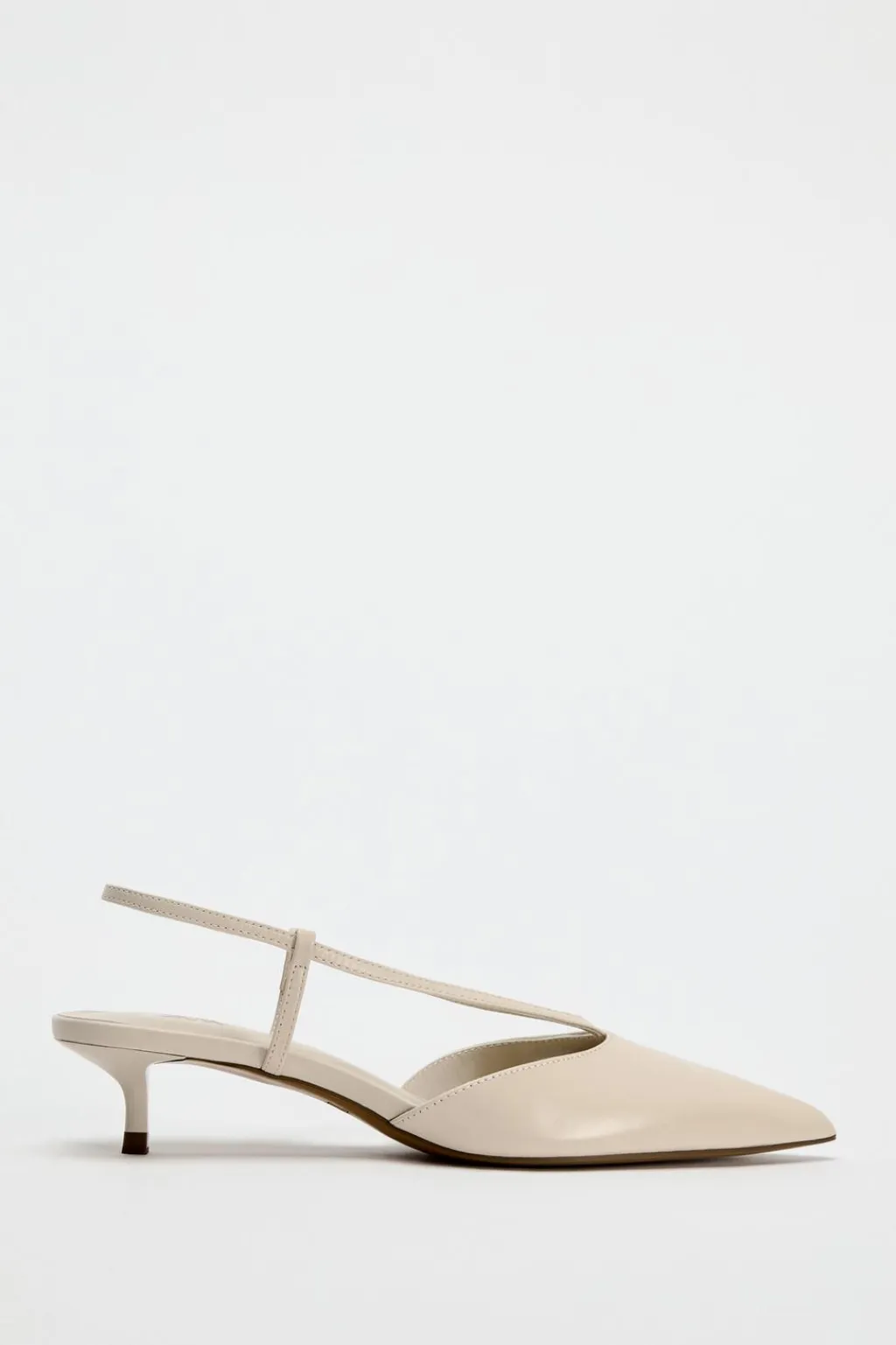 Zapato destalonado en piel. Tacón kitten. Tira trasera elástica. Acabado en punta.