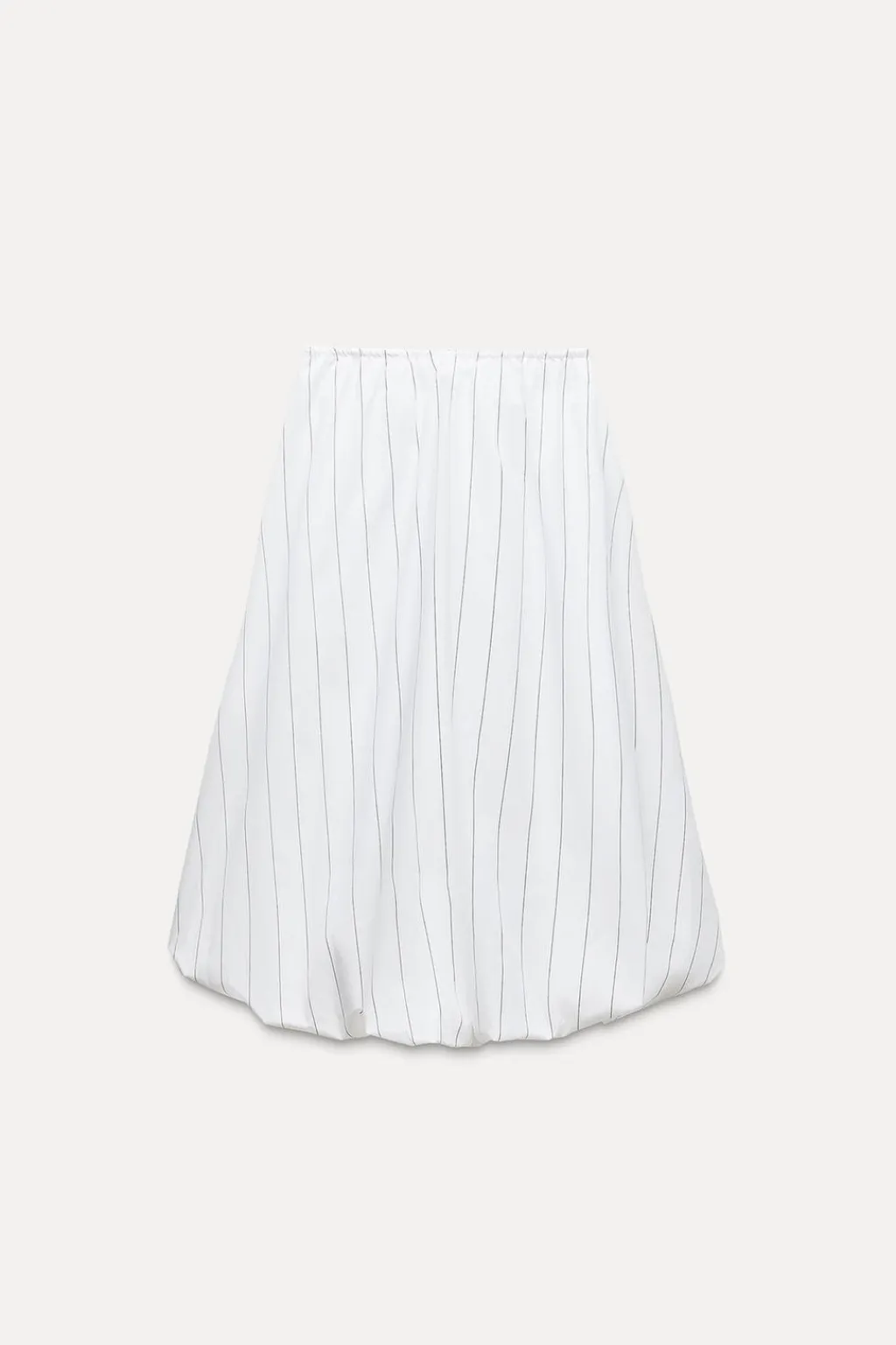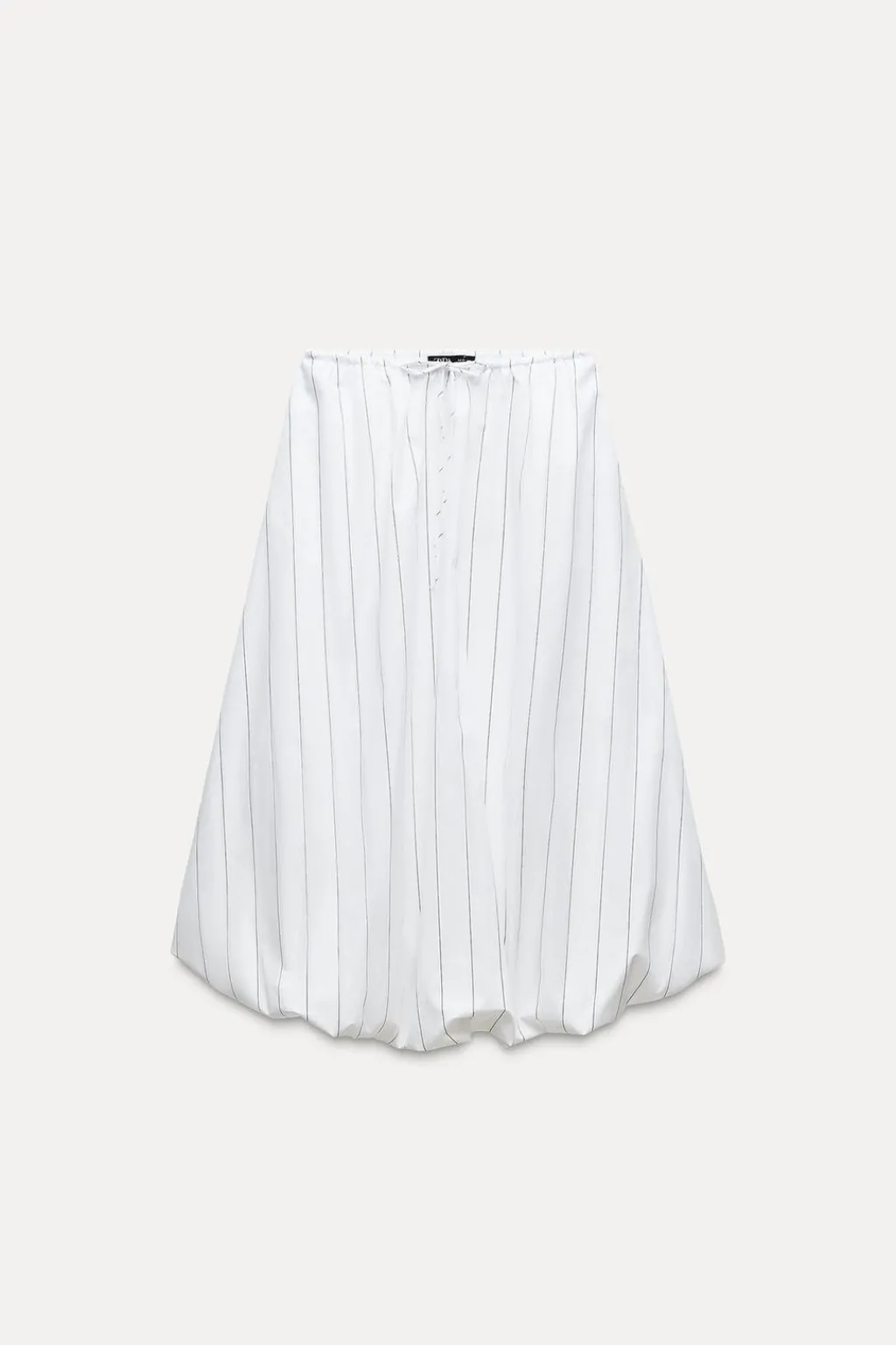 Falda midi de tiro medio con cintura elástica ajustable con lazada. Bolsillos laterales ocultos en costura. Forro interior cominado. Bajo acabado globo con elástico interior.