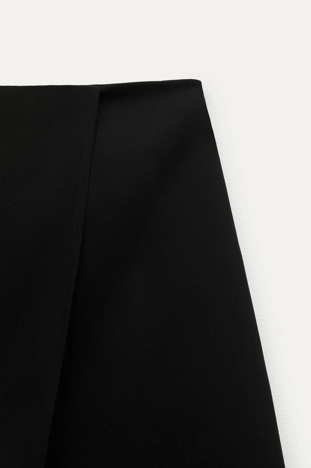 Falda pantalón de tiro alto con delantero cruzado. Cierre lateral con cremallera oculta en costura.