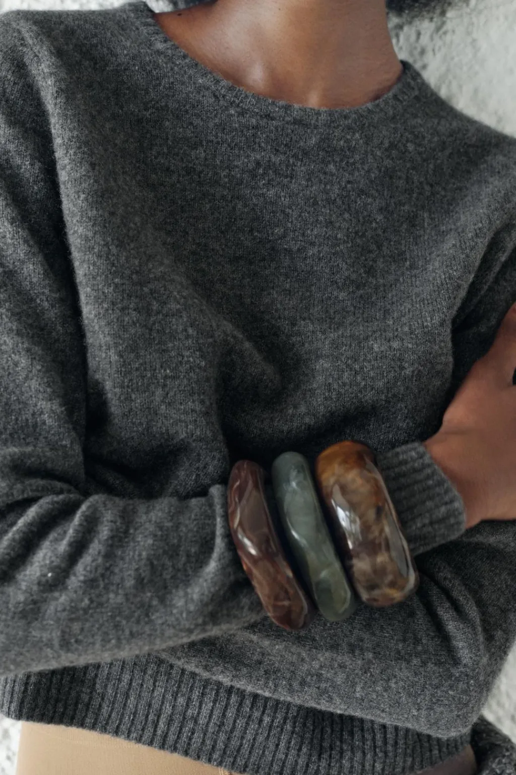 Jersey confeccionado en 100% lana. Cuello redondo y manga larga. Acabados en rib.