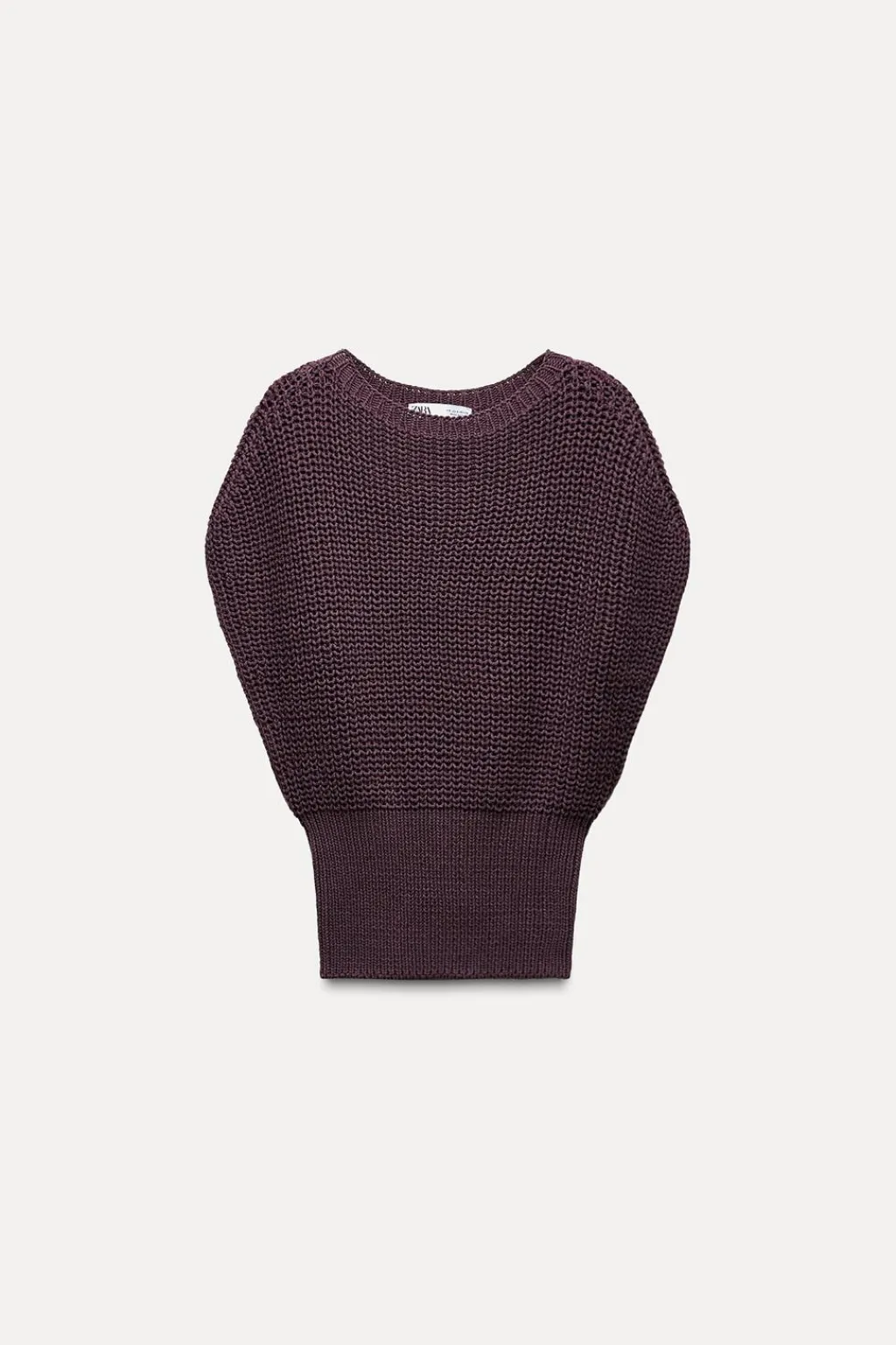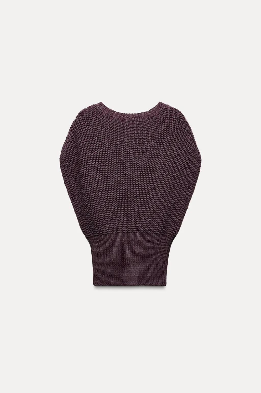Jersey chaleco de cuello redondo amplio y manga sisa. Bajo ajustado.