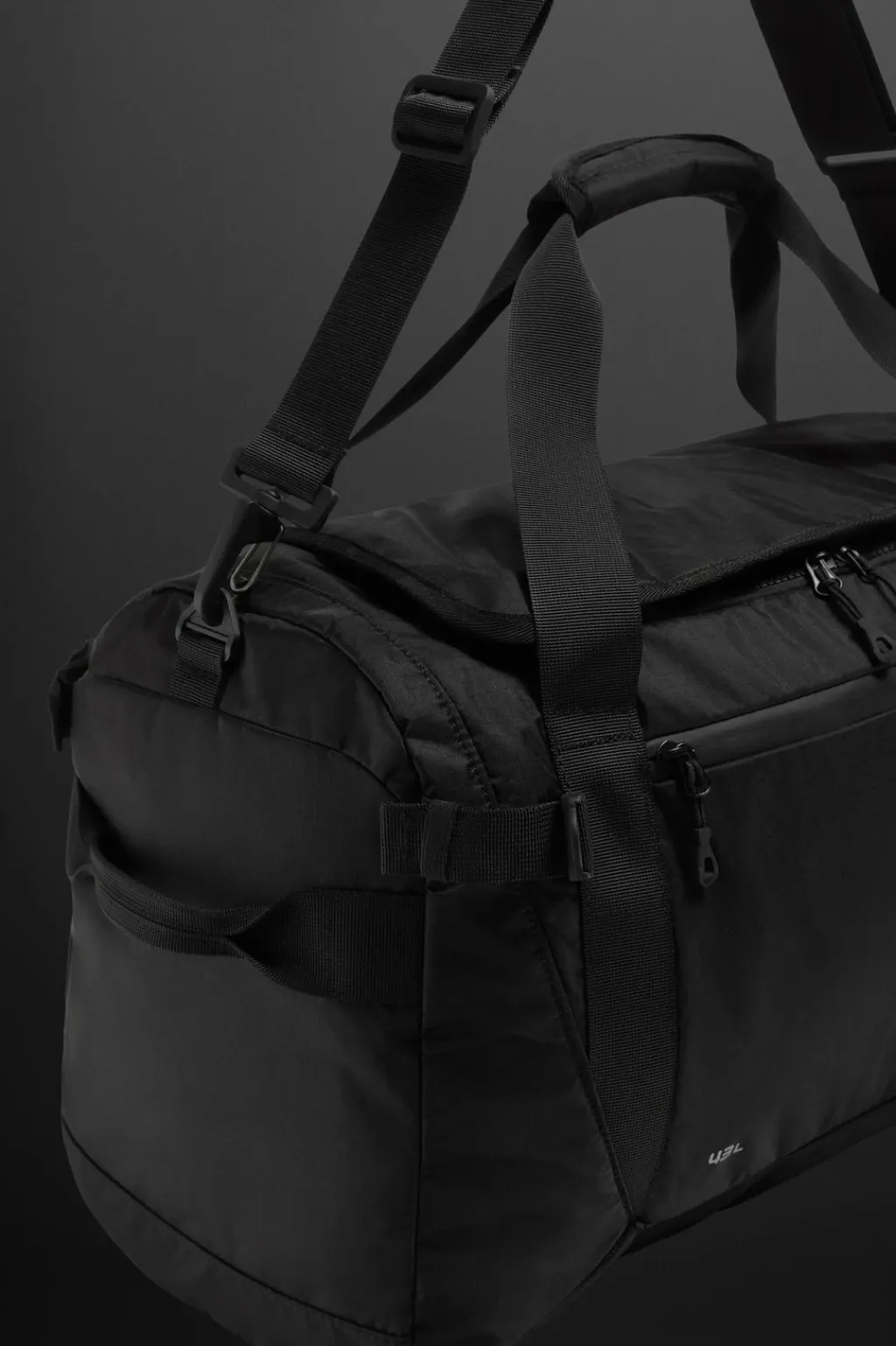 Maleta deportiva. Exterior fabricado en tejido técnico. Compartimento principal con cierre mediante cremallera y dos bolsillos interiores. Bolsillo frontal con cierre mediante cremallera termosellada. Bolsillos auxiliares laterales de malla elástica con cierre ajustable. Asas de hombro removible y ajustable.