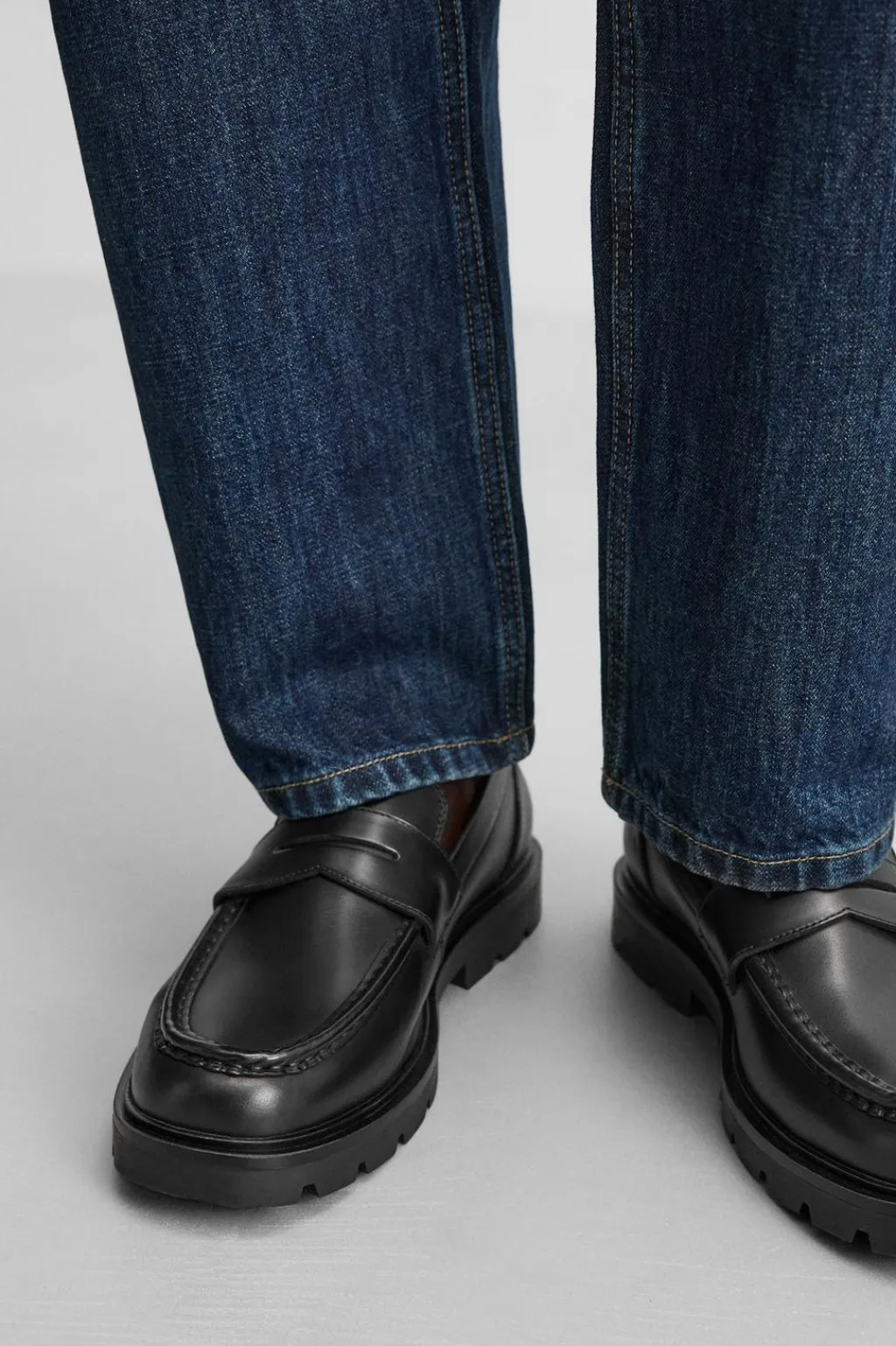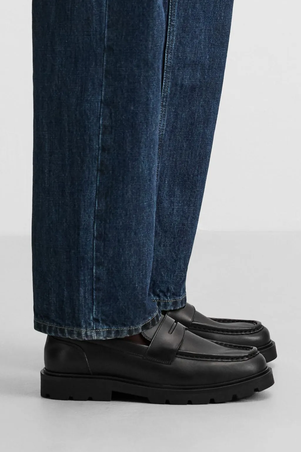 Mocasín de vestir. Parte superior fabricada en piel. Detalle de antifaz en el empeine. Suela con volumen.