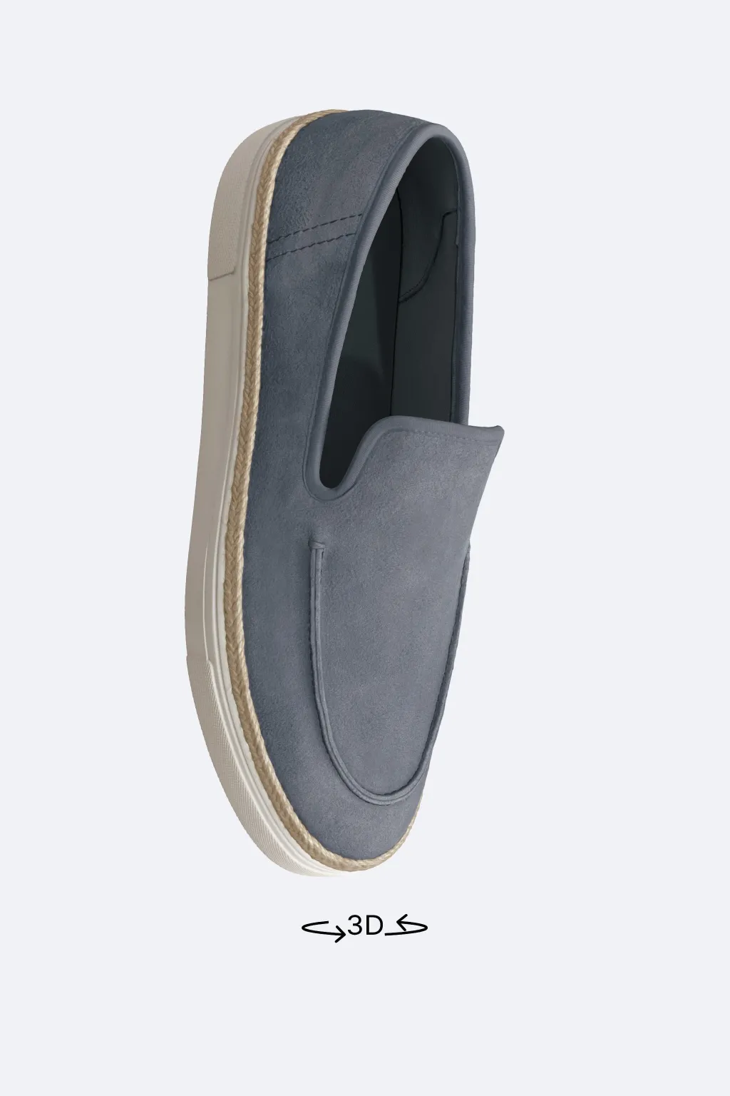 Mocasín casual. Parte superior fabricada en piel con acabado serraje. Detalle de bordón en el empeine. Piso con detalle de yute.