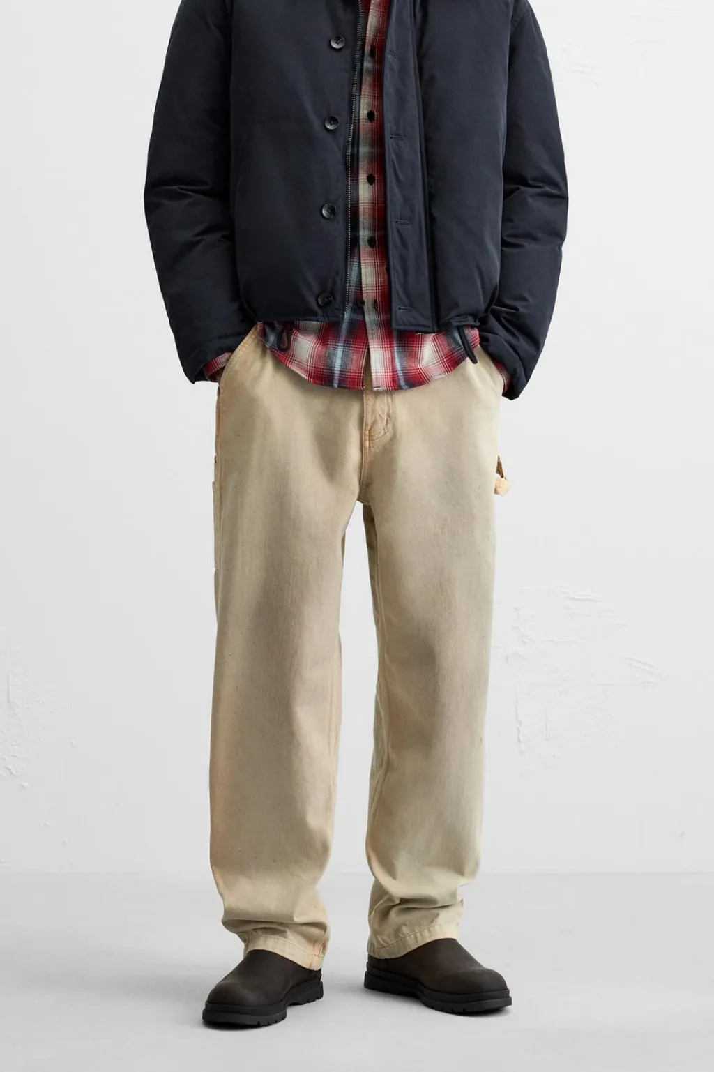 Pantalón relaxedfit. Bolsillos frontales y detalle de bolsillos traseros de plastrón. Aplicación de bolsillos plastrón y tira multifunción en pernera. Efecto lavado. Cierre frontal con cremallera y botón.