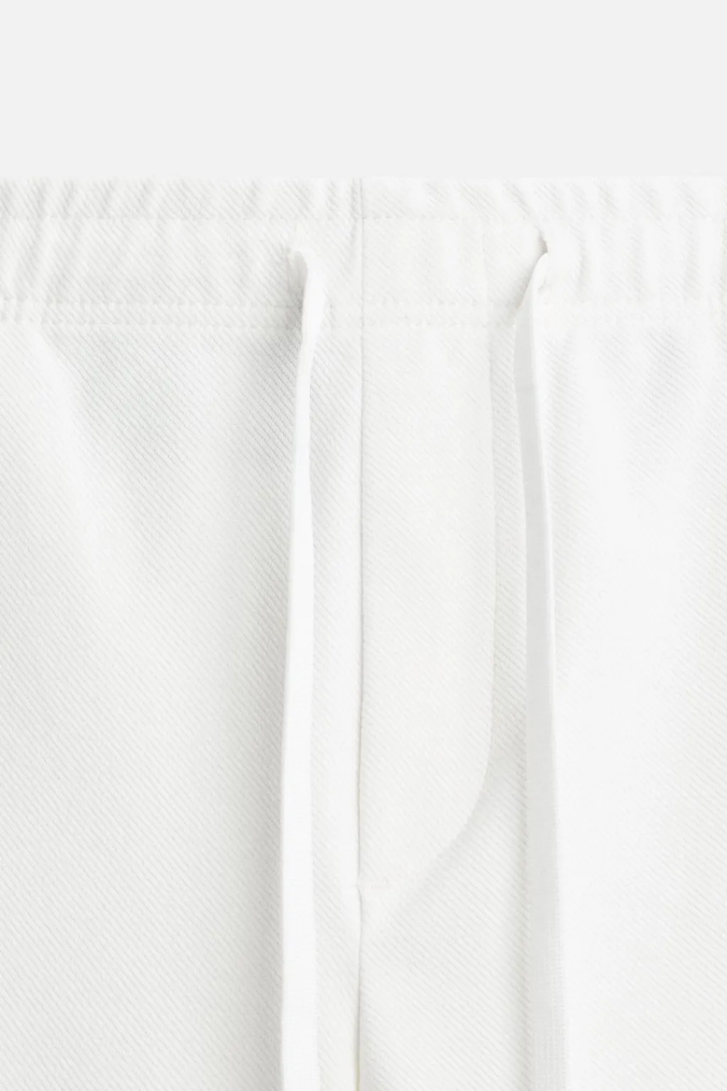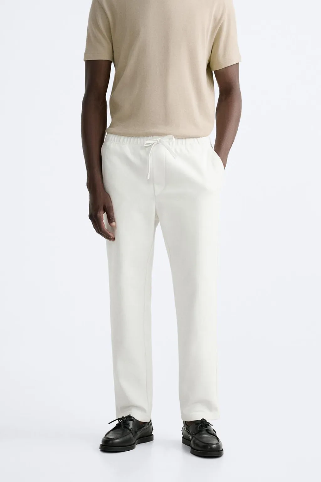 Pantalón confeccionado en tejido con mezcla de algodón. Cintura elástica ajustable con cordón. Bolsillos frontales y detalle de bolsillos de vivo en espalda.