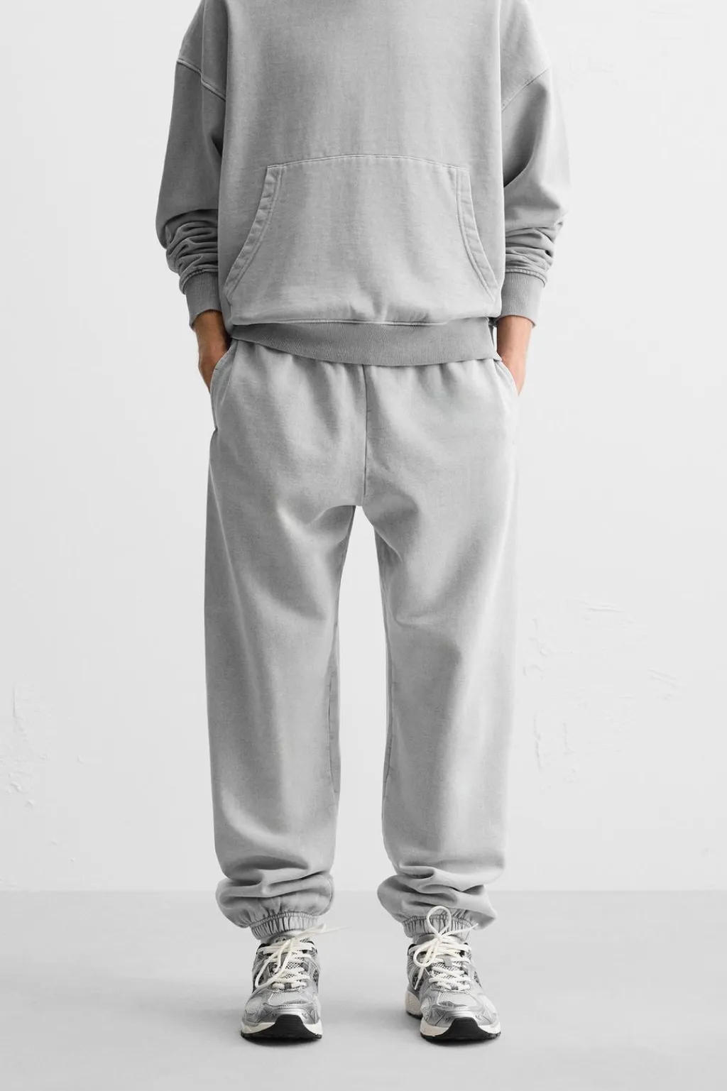 Pantalón relaxed fit. Cintura elástica ajustable con cordón. Bolsillos laterales. Efecto lavado. Bajo acabado con elástico.