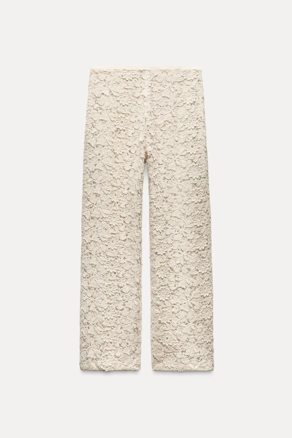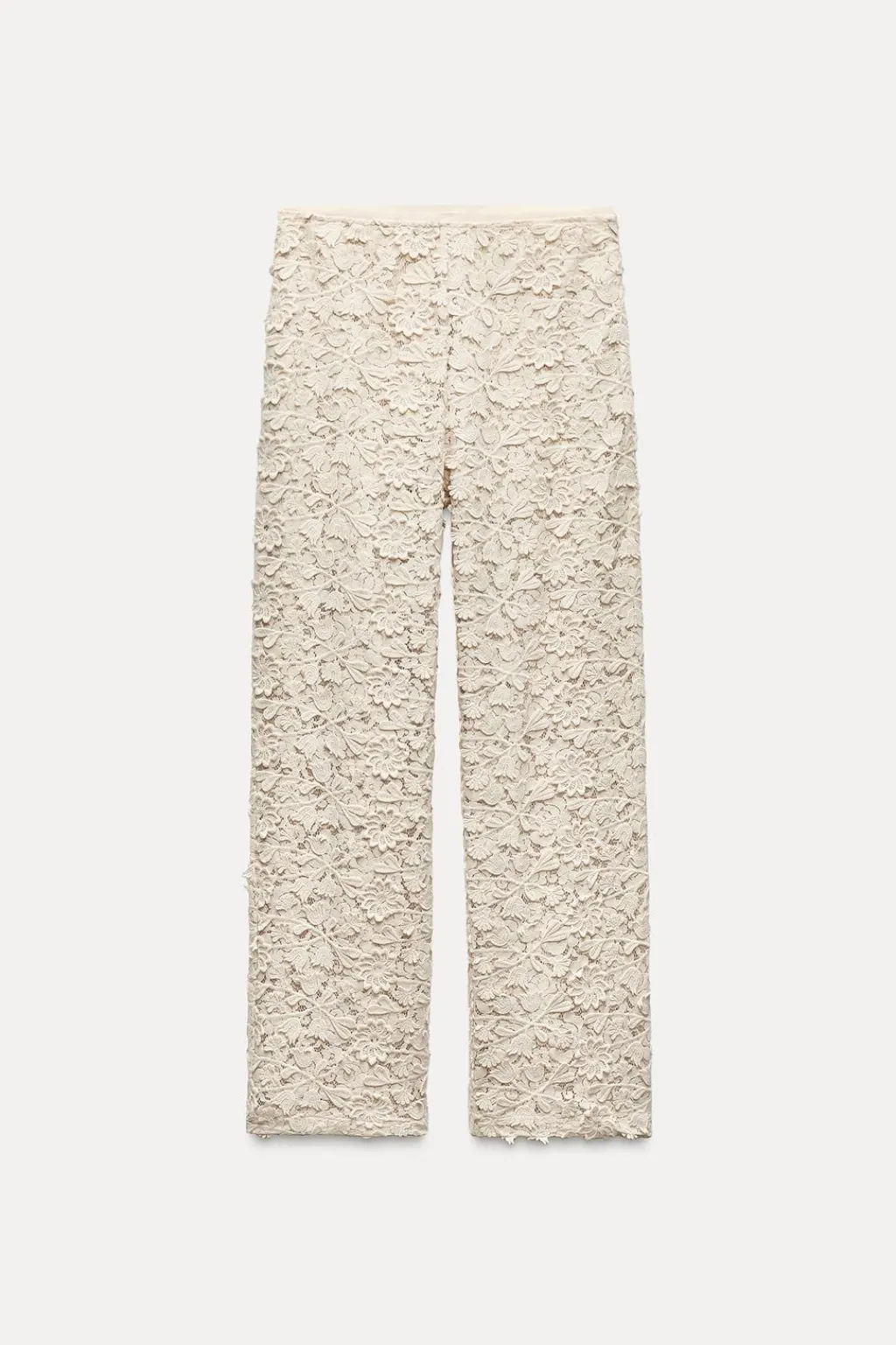 Pantalón confeccionado en tejido tipo crochet con mezcla de algodón. Tiro medio y cintura con elástico. Pierna recta.