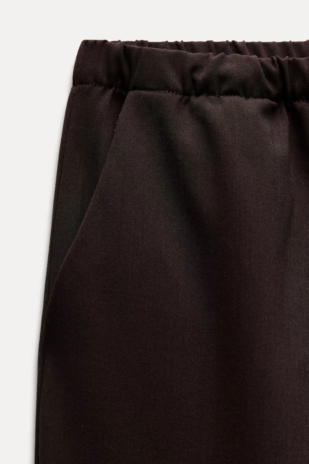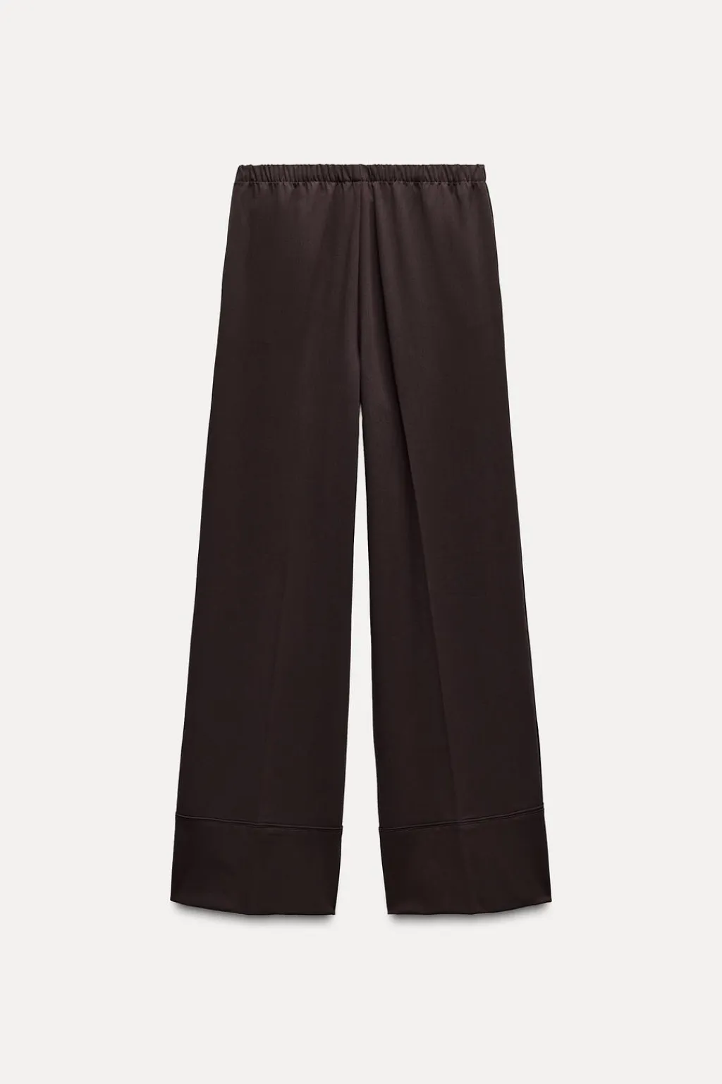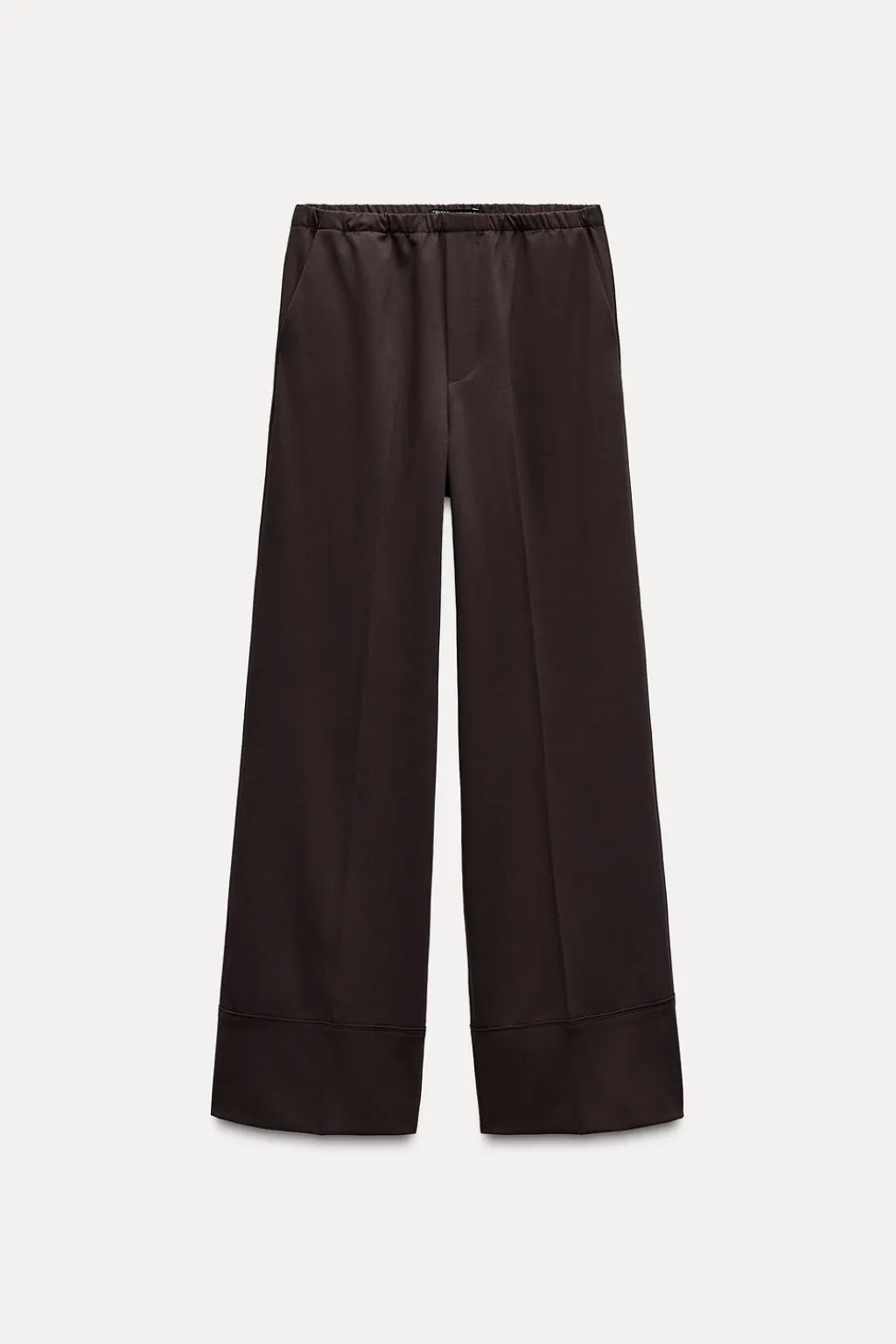 Pantalón de tiro medio con cintura elástica. Bolsillos laterales. Pierna recta. Detalle de vivo a tono en lateral.