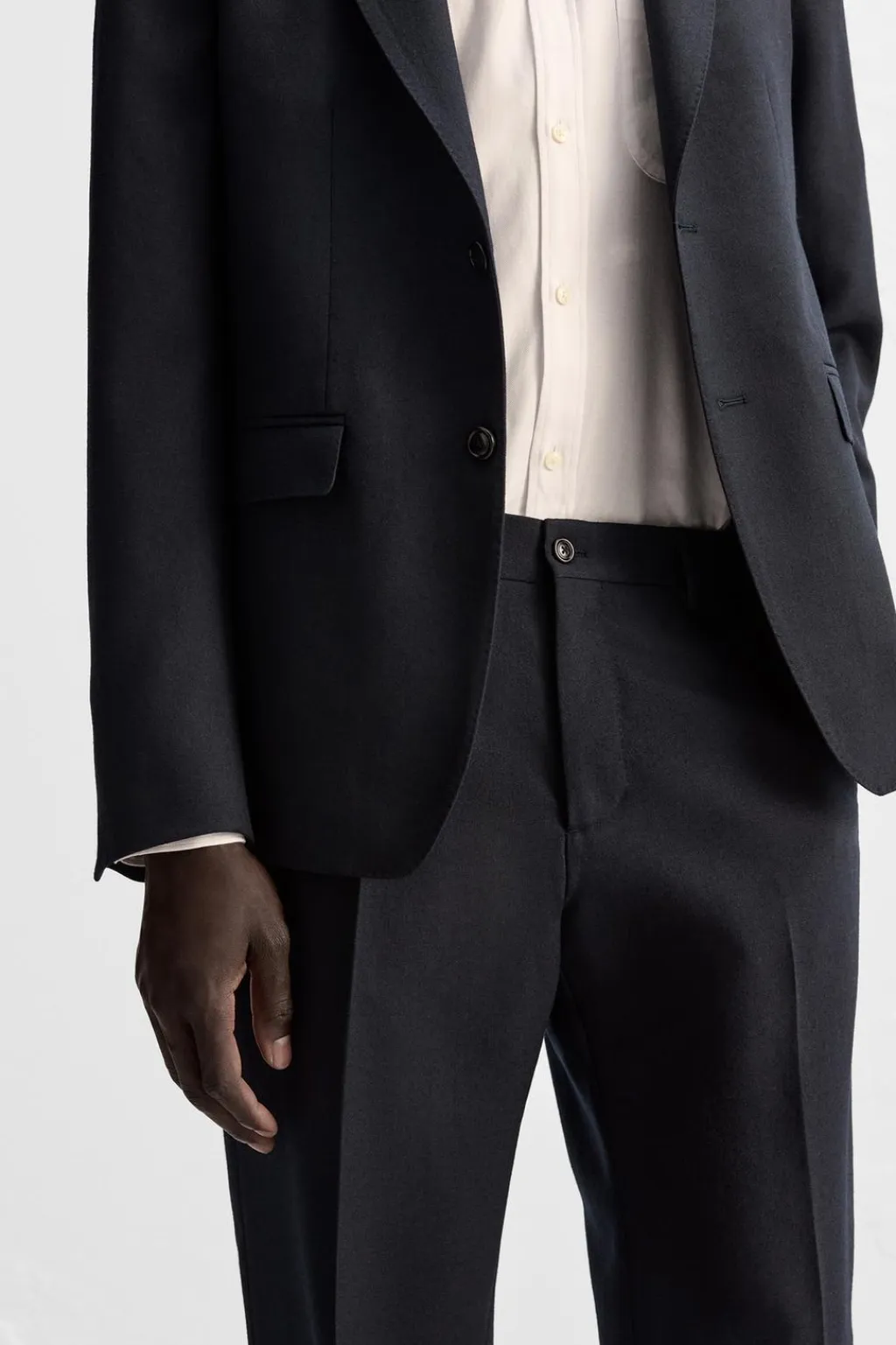 Pantalón regular fit confeccionado en tejido de lana con origen italiano.