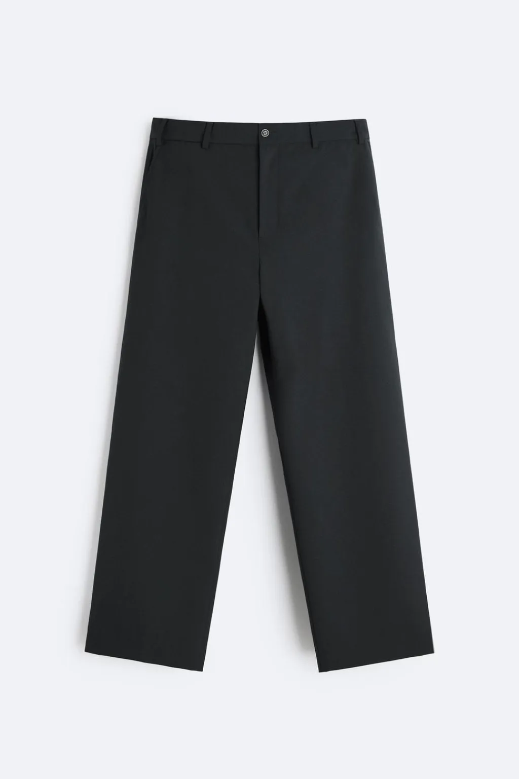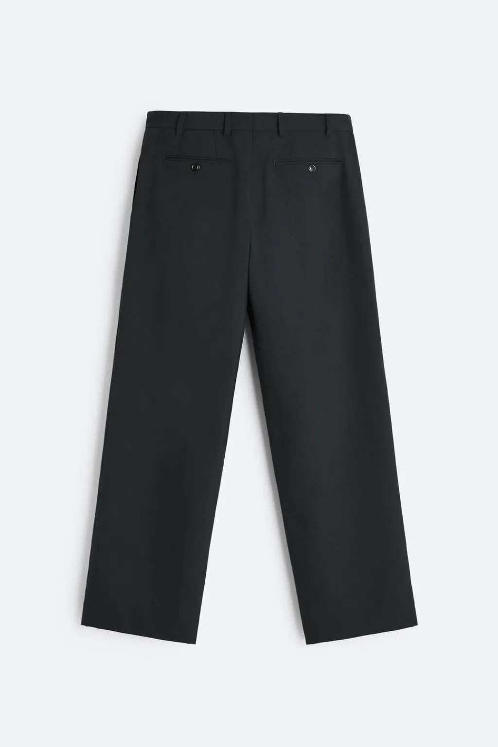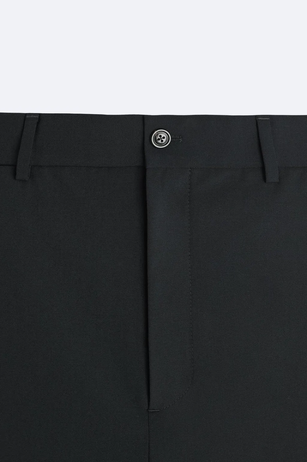 Bolsillos frontales y detalle de bolsillos traseros de doble vivo con botón. Cierre frontal con cremallera y botón.