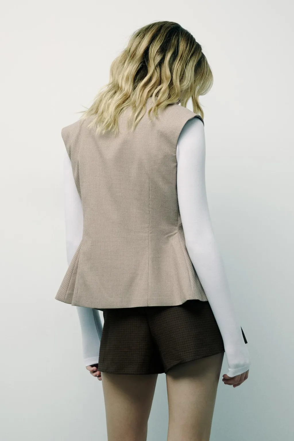 Shorts de tiro altocon trabillas. Forro interior combinado. Cierre lateral con cremallera oculta en costura.