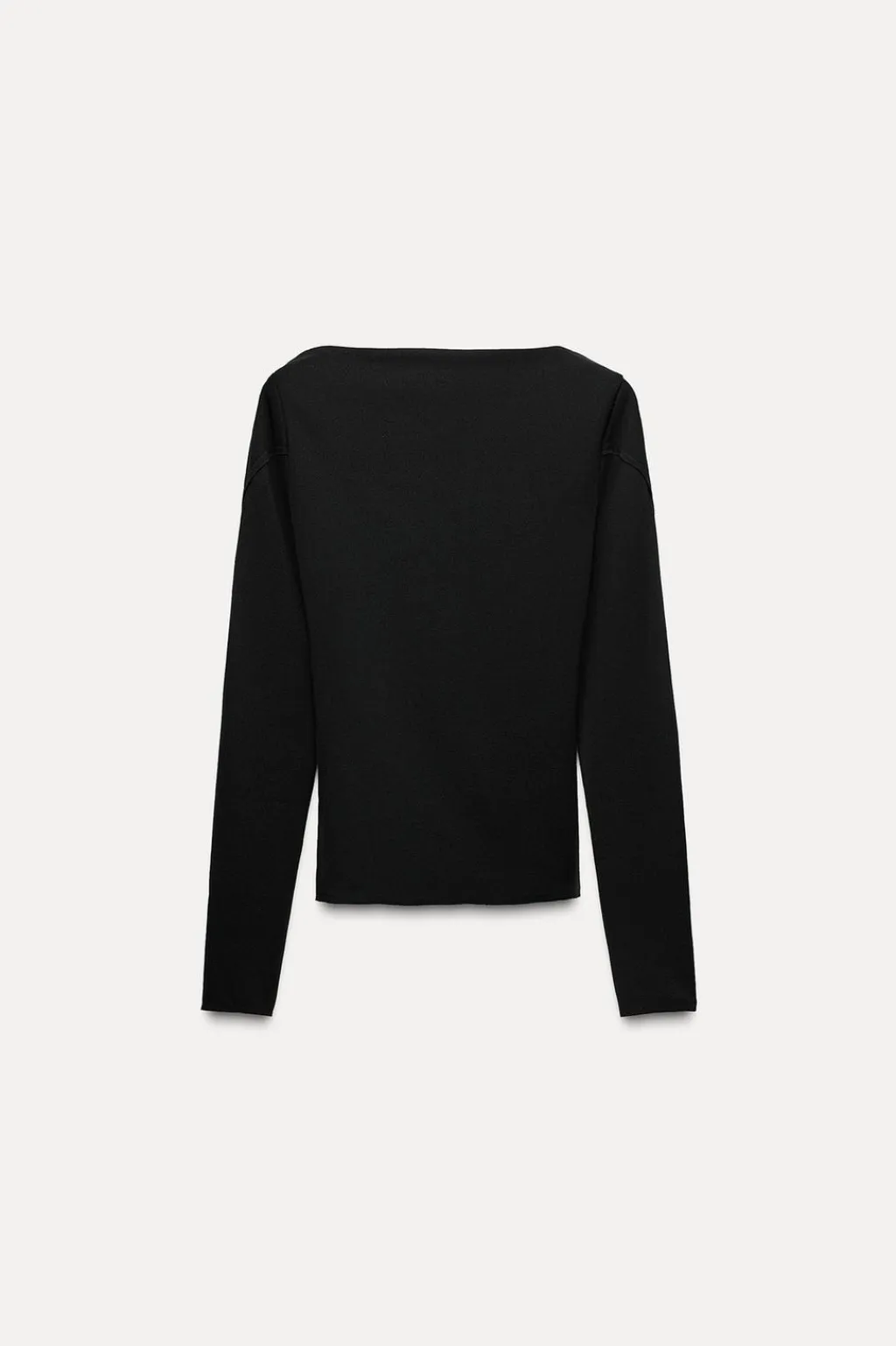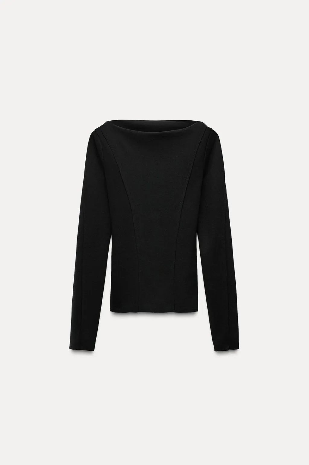 Top de cuello barco y manga larga con abertura. Detalle de costuras marcadas.