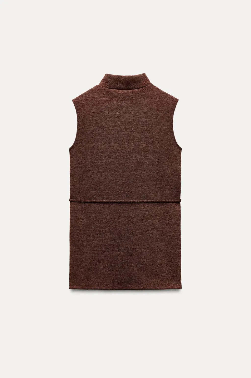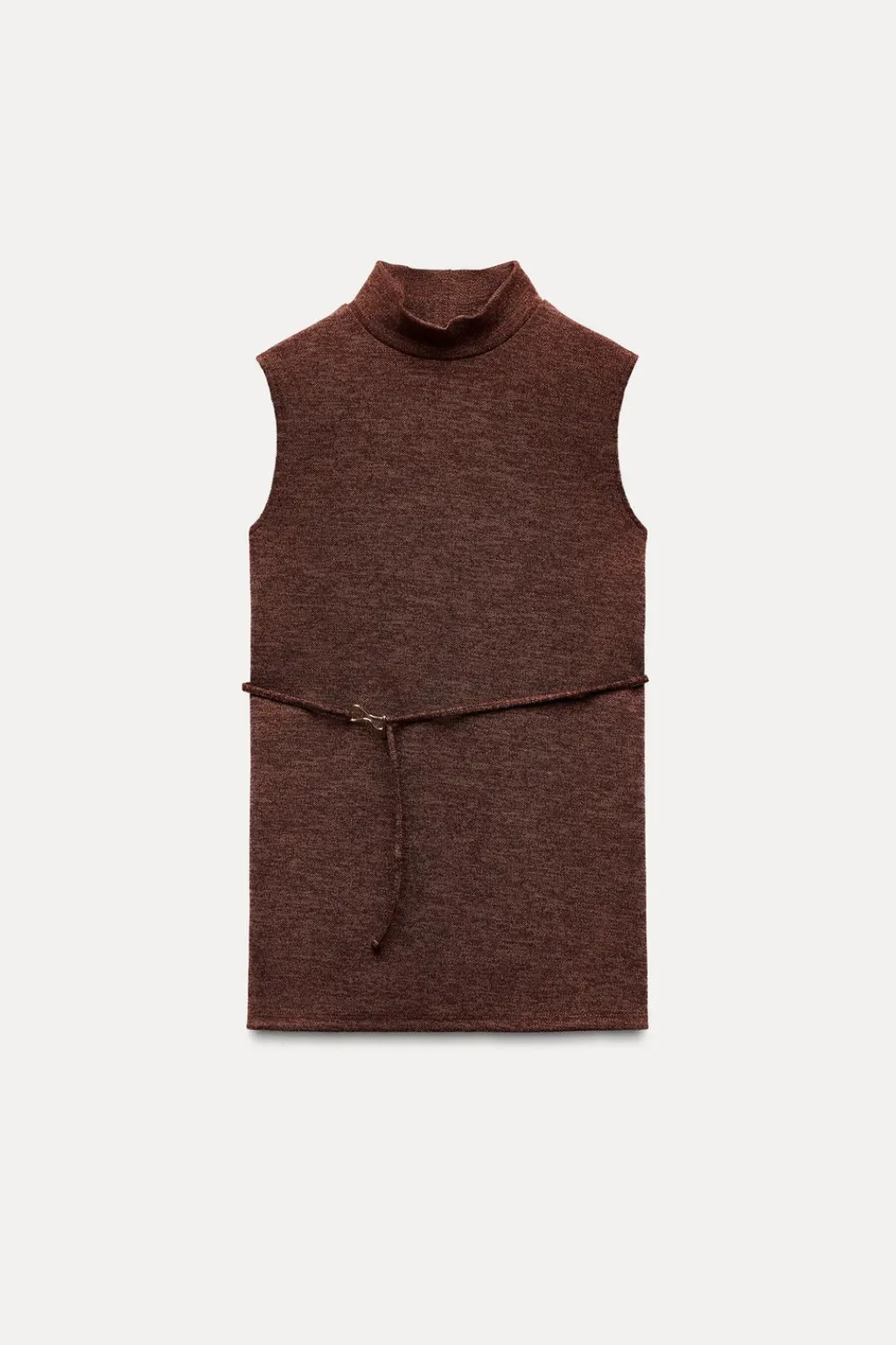 Top de cuello perkins y manga sisa. Detalle cinturón fino en mismo tejido con hebilla metálica.