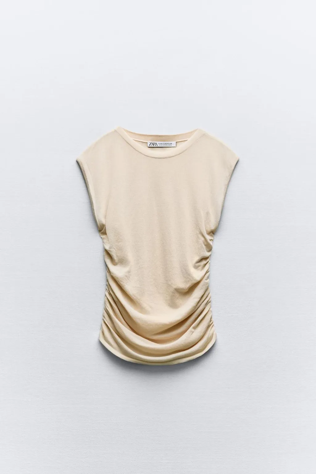 Top de cuello redondo y manga corta. Detalle de frunces laterales.