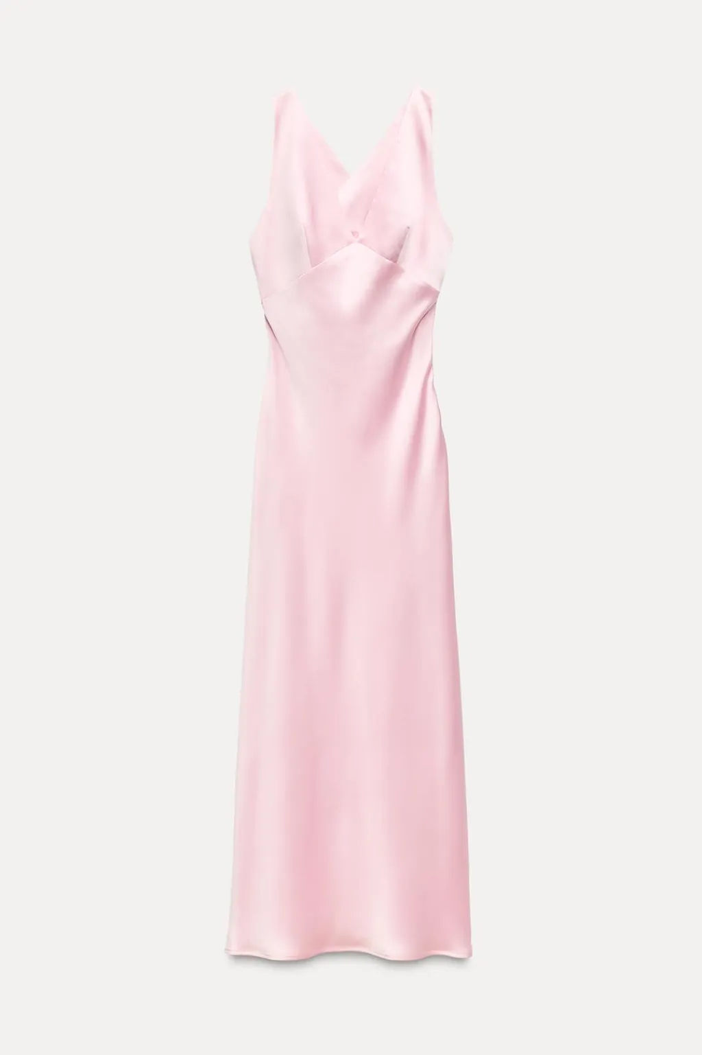 Vestido de escote pico y tirantes anchos cruzados en espalda. Cintura entallada. Cierre lateral con cremallera oculta en costura.