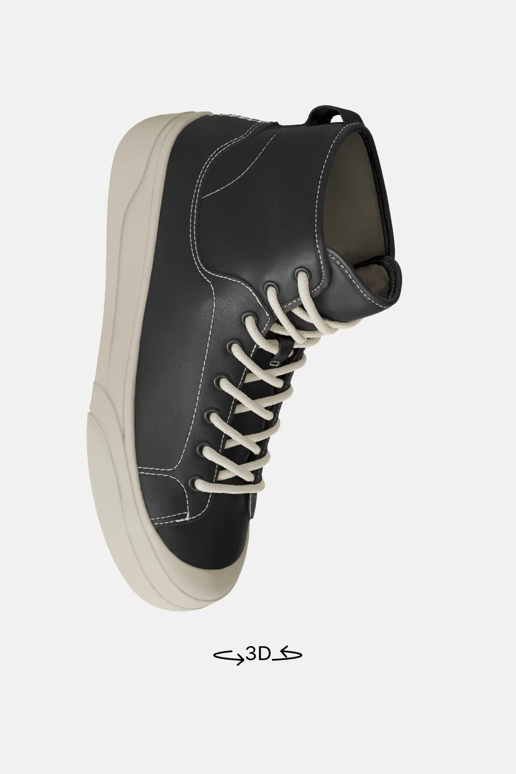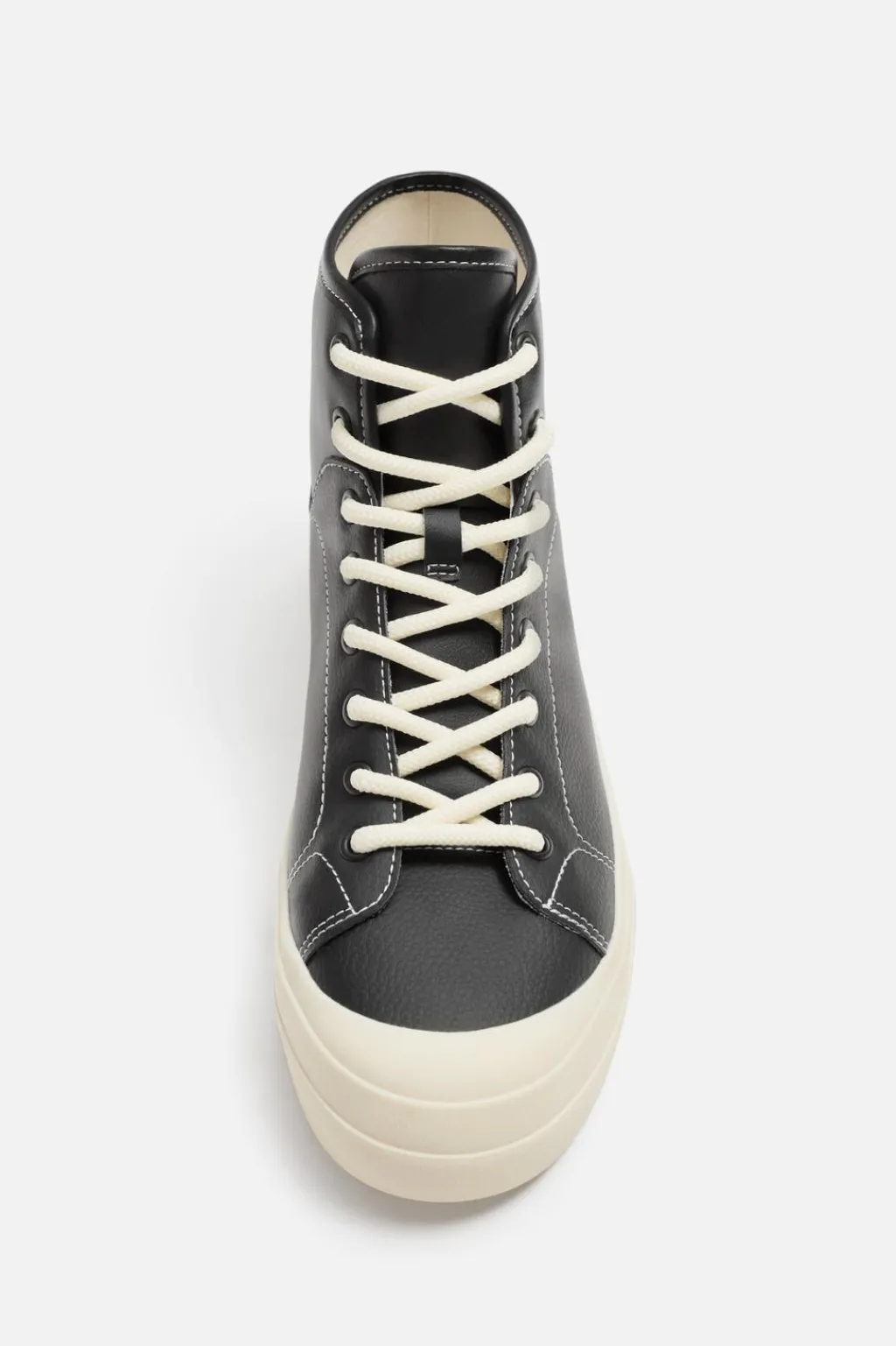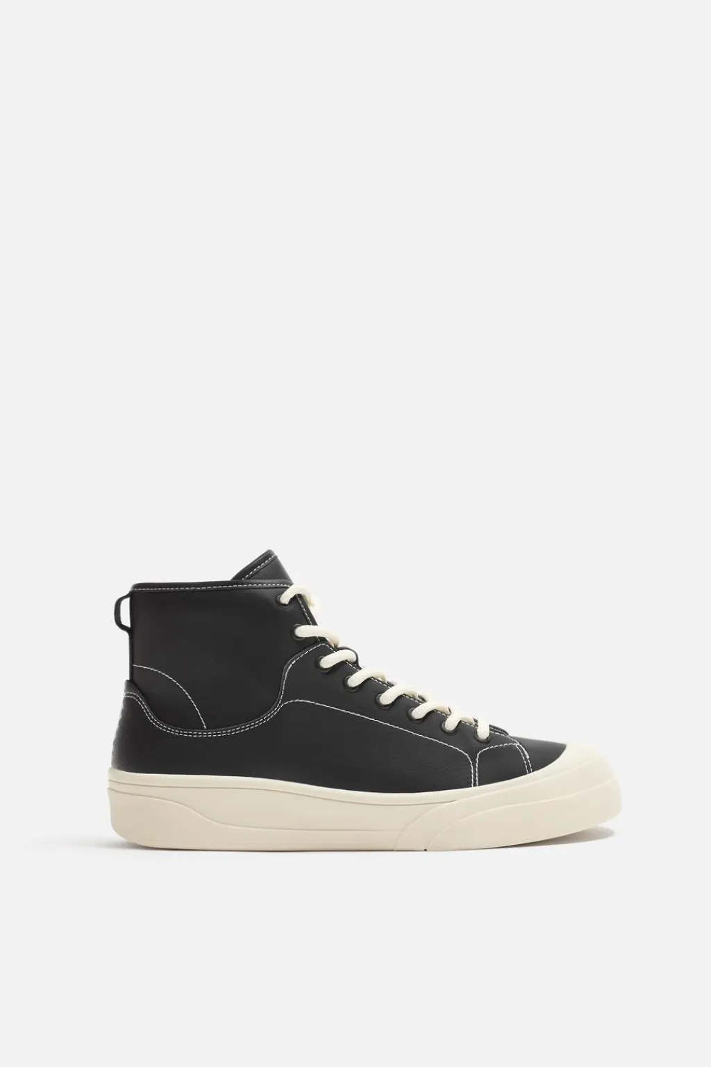 Zapatilla deportiva botín. Parte superior con detalles de pespuntes. Cordonera con ocho pasados. Suela con volumen y acabo irregular.